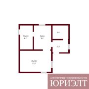 Общая жилая площадь 34,7 кв.м. Две комнаты, кухня, кладовка.