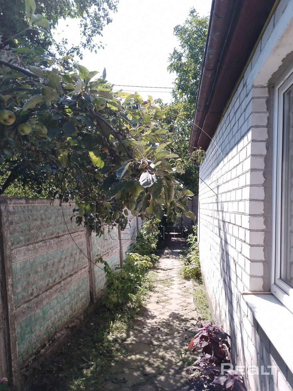 Дом 1950 года постройки на бетонном фундаменте.Стены из строительного бруса, облицованы кирпичом. Деревянные балки перекрытий. Кровля- шифер.Окна ПВХ и дерево.