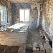 Дом после пожара в 2014 году. Достроены стены,крыша. По всему дому установлены новые окна,входные двери. Имеется гипсокартон для отделки всего дома. Проведена вода На участке большой сарай,летняя кухня,огород