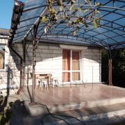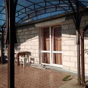 Стены дома- из бруса, обложены блоками. Две отапливаемые пристройки из блоков. Кровля дома - шифер. Окна ПВХ и двери со вторым выходом из жилого помещения на южную террасу. Две светлые изолированные комнаты. Совмещенный санузел. Кухня-столовая 11,5 кв.м. Кладовая и небольшое помещение свободного назначения.