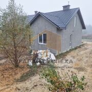 Коробка дома возведена в 2018 г. и переведена в НЗКС. В 2024 начались наружные и внутренние работы, прокладка коммуникаций, ввод в эксплуатацию. Материал стен – газосиликатные блоки 300 мм, утеплитель – пенополистирол 100 мм, перекрытие утеплено плитным минеральным утеплителем на основе кварца 200 мм, металлизированная пароизоляция внутри, супердиффузионная мембрана снаружи, материал кровли – металлочерепица, окна – двухкамерный стеклопакет (три стекла) с двойным мультистеклом (энергосберегающее покрытие).