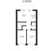Второй этаж представляет собой открытое пространство без перегородок, что позволяет реализовать любые дизайнерские идеи. Здесь также предусмотрено место для санузла, а общая площадь второго этажа составляет 50 м2. На этом уровне находятся два балкона, откуда открывается великолепный вид на окружающую природу.