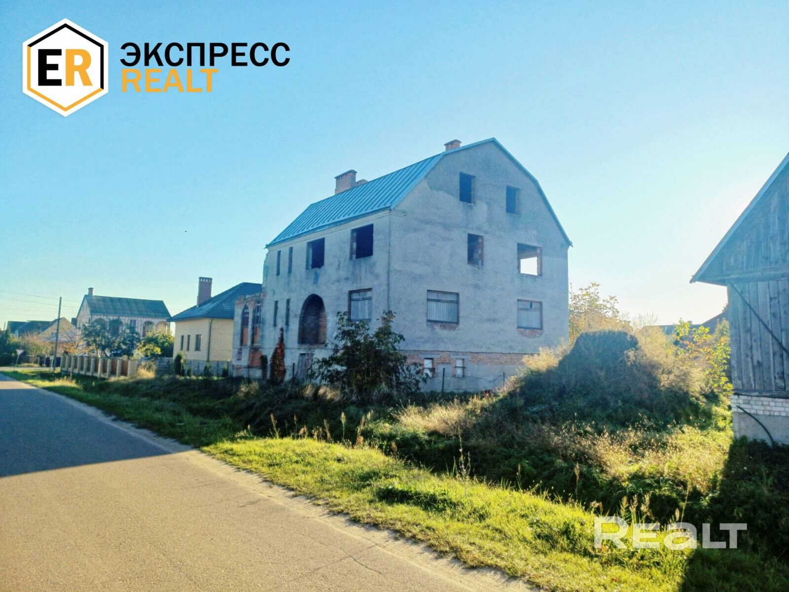 Предлагается к продаже незавершённое строительством капитальное строение (одноквартирный жилой дом) в г.Кобрине. Дом общей площадью 416.8 кв.м., двухэтажный, с цокольным этажом и отапливаемой пристройкой. Наружные стены – блок легкобетонный, облицованный кирпичом; кровля - сталь кровельная (оцинкованная); фундамент – ленточный из монолитного бетона; перекрытие – ж/б и деревянное. Все инженерные коммуникации – центральные (по улице). Степень строительной готовности 53%. Земельный участок площадью 0,0995 га прямоугольной формы в плане, с удобными асфальтированными подъездными путями. Дом расположен в спокойном районе с малоэтажной частной застройкой. В шаговой доступности продуктовый магазин, супермаркет «Евроопт», аптека, остановки общественного транспорта, ведётся строительство крупного торгового центра. Торг уместен при осмотре.