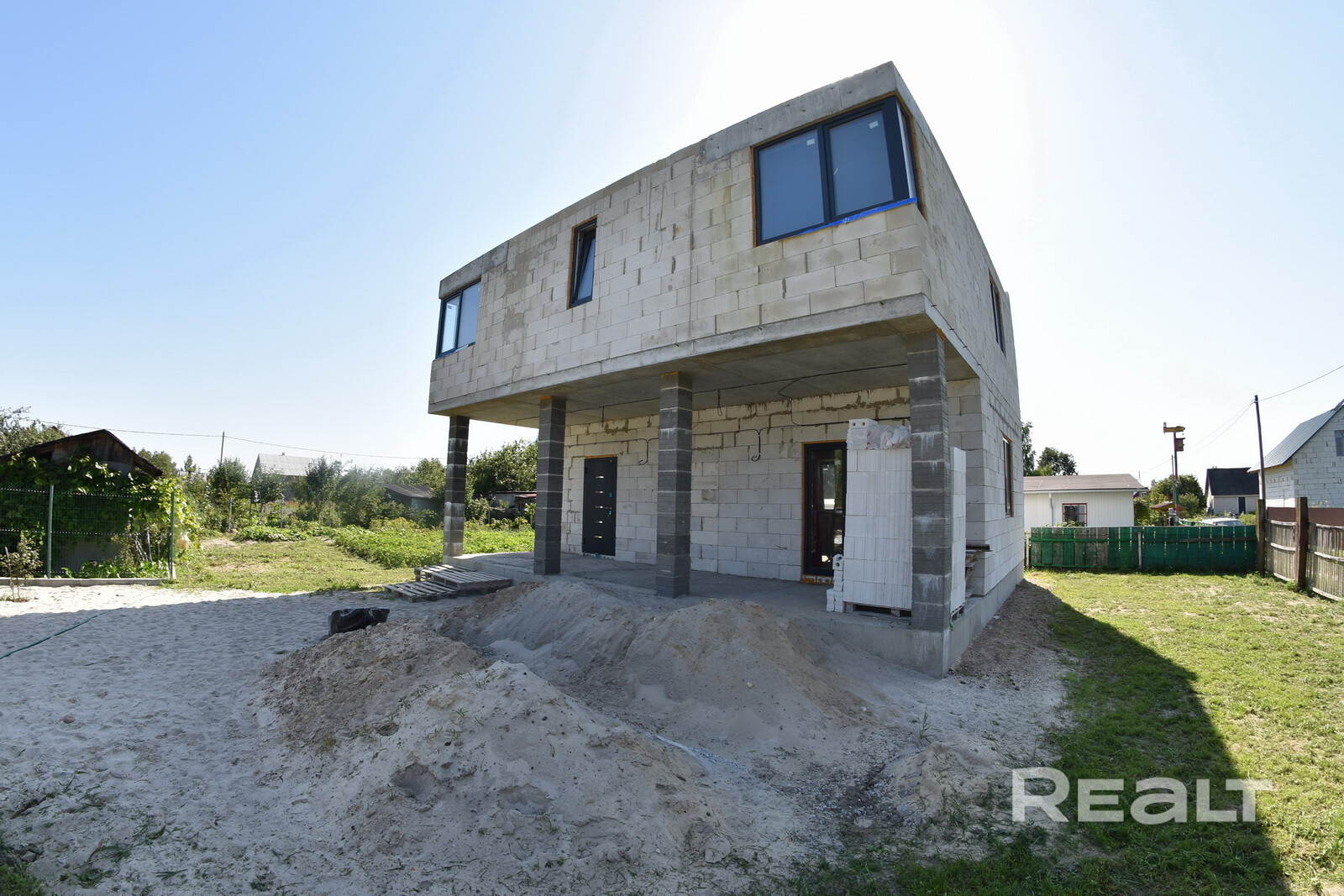 Современный дом на садовом участке. Залита плита, стены - газаселикатный блок, межэтажное перекрытие и крыша - монолит. Выполнена разводка электричества по дому. Участок 10 соток, угловой, в частной собственности. На участке есть скважина. Основная часть участка на которой расположен дом подсыпан выше дороги.