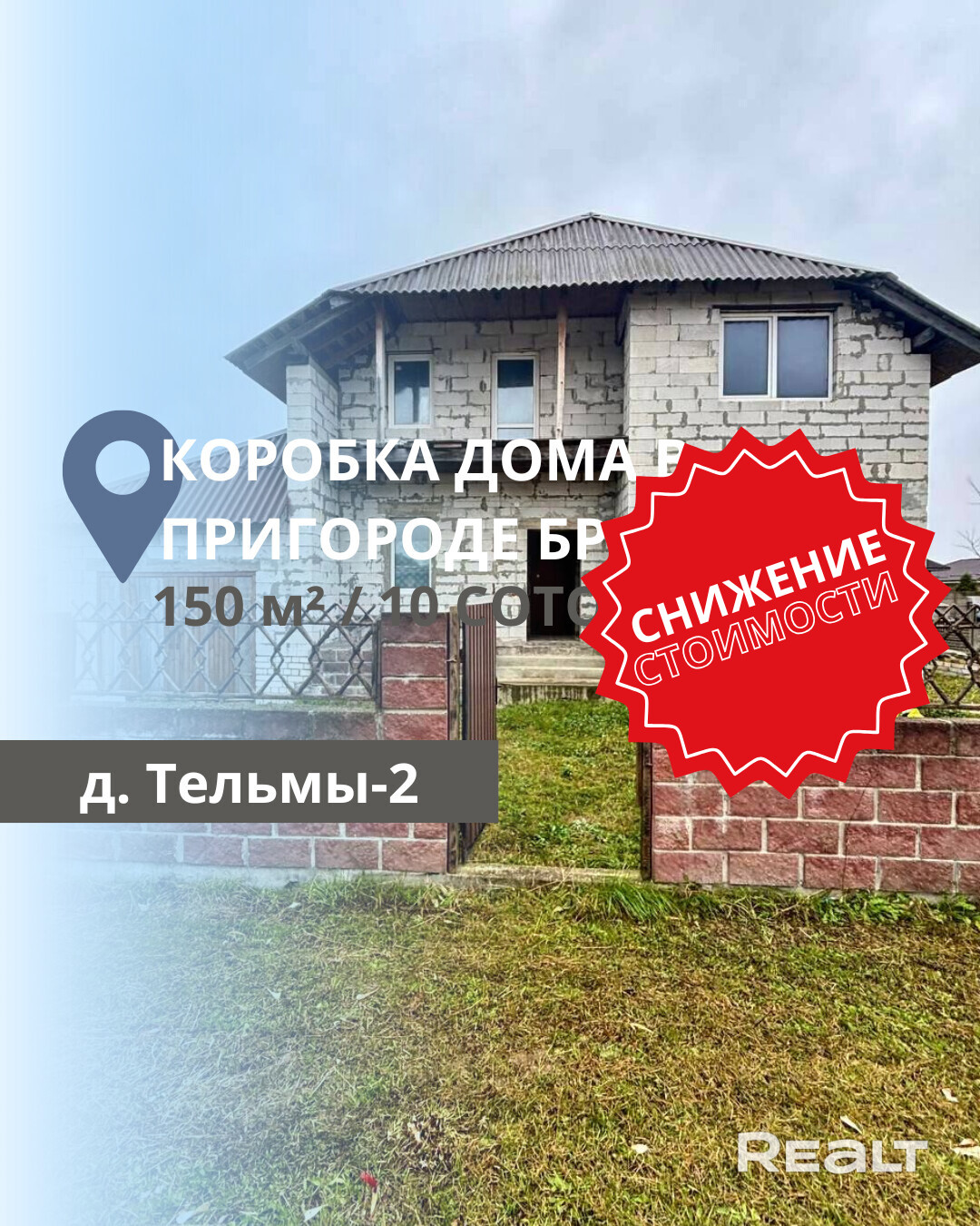 Продается коробка дома под отделку, расположенная в деревне Тельмы-2. Дом двухэтажный, общей площадью 150 м2 + встроенный гараж. Участок площадью 10 соток, огорожен. Окна выполнены из ПВХ, а входная дверь — металлическая. Все коммуникации центральные, что обеспечивает комфортное проживание. Этот объект станет отличным выбором для тех, кто хочет создать свой идеальный дом в живописном месте.