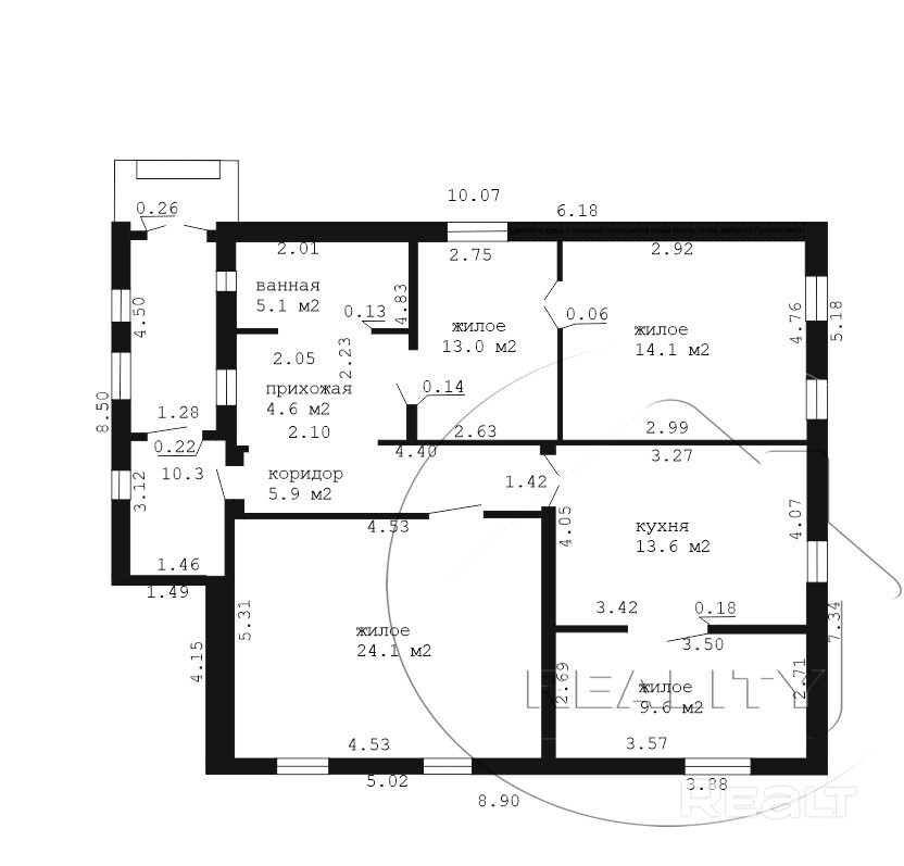 Площадь СНБ 100,3 / 90,0 / 60,8 / 13,6 кв.м.