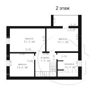 Функциональная планировка дома на включает просторную гостиную с камином, кухню, 2 санузла, холл, большие спальни на мансарде.
