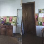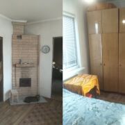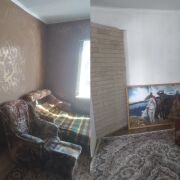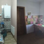 Отгороженный хоздвор, с отдельным въездом, без построек. Имеется пруд, сад, цветник, декоративные деревья, маленький сарайчик. Фундамент под летнюю кухню. В доме 4 жилые комнаты( 2 проходные, 2 изолированные), кухня, котельная, санузел(туалет, ванная) раздельные, стены окрашены, линолеум. Канализация и вода( скважина 16,5 м) Электроэнергия 320 кВт. Имеется печь (грубка) с камином, облицована плиткой. интернет, ТВ "Зала". Окна ПВХ. Предполагается наружный дизайн.