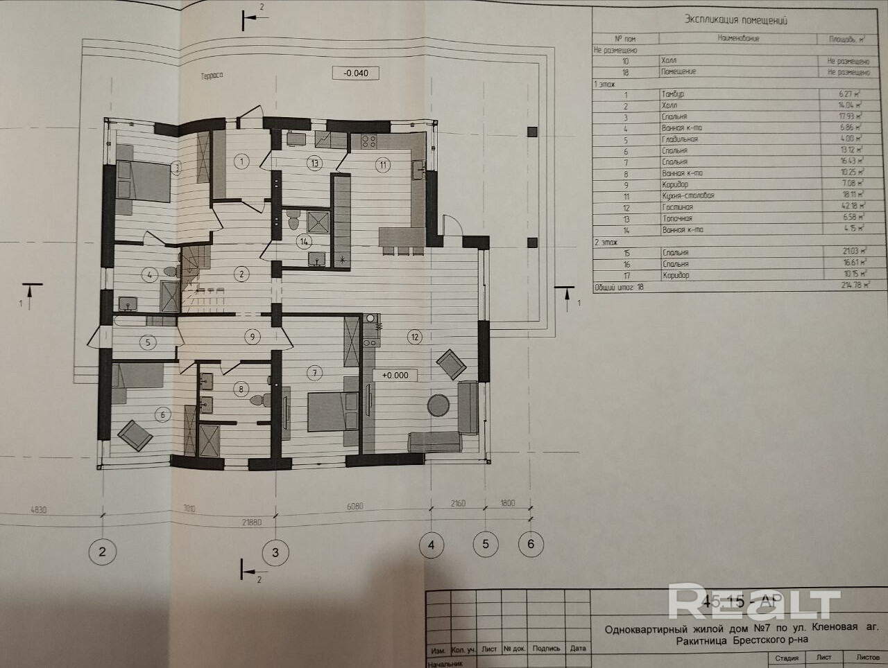Коробка дома в пригороде Бреста, аг. Ракитница. Коммуникации: электричество, газоснабжение - централизованное (по улице), водоснабжение - скважина, центральный водопровод (по улице). Участок - 0,1822 га, в частной собственности. Так же ограждение по периметру, высажен молодой сад. Фундамент более 2м глубиной, мощный и крепкий. Стены из газоселиката, каждый третий ряд армированы по кругу. Подвал под кухней и топочной.