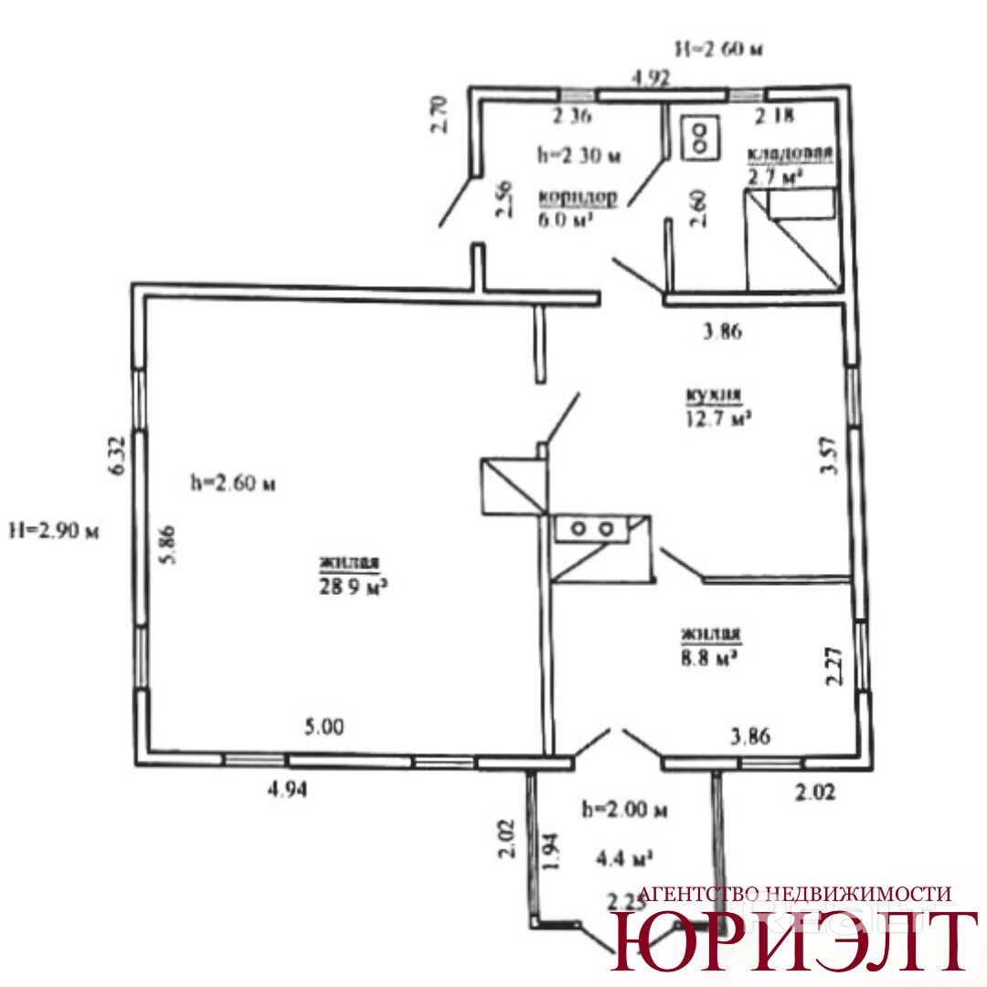 Дом общей площадью по СНБ – 63.5 м2, общая жилая - 59.1 м2, жилая - 37.7 м2 , просторная кухня – 12,7 м2, погреб, кладовое помещение можно переоборудовать под с/у.