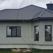 Характеристики дома: фундамент - ленточный монолитный, стены из газосиликатных блоков, утепление - пенопласт 10 см, фасад оштукатурен, сделана декоративная отделка. Материал кровли – металлочерепица из немецкого металла, окна ПВХ «Монблан» в цвет крыши (5-камерный профиль 70 мм, 2-камерный стеклопакет 42 мм). Дом строился для себя, применялись дорогие и качественные материалы.