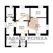 Общая площадь здания составляет 61,37 кв.м, жилая – 38,82 кв.м. В доме размещены 4 жилые комнаты, кухня 7,21 кв.м, совмещённый санузел, а также прихожая и коридор.