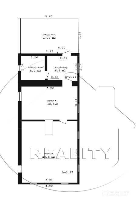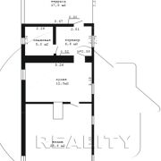 Общая площадь жилого дома 58,7 м2/ жилая 41,4 м2. Жилая часть дома состоит из большой комнаты площадью 28,6 м2, оснащенной мебелью. Кухня 12,8 м2 также с кухонным гарнитуром и бытовой техникой. К дому примыкает терраса, откуда открывается живописный вид на природное окружение.