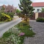 Земельный участок правильной прямоугольной формы, площадью 10,2 сот. На участке расположены два гаража, великолепная баня с комнатой отдыха, беседка, барбекю. Участок огорожен бетонным забором. Участок облагорожен. Большая часть участка вымощена тротуарной плиткой. Территория благоустроенна: растут плодовые деревья и кустарники. Для ценителей продукции, выращенной на своем участке, несколько соток отведено под огород.