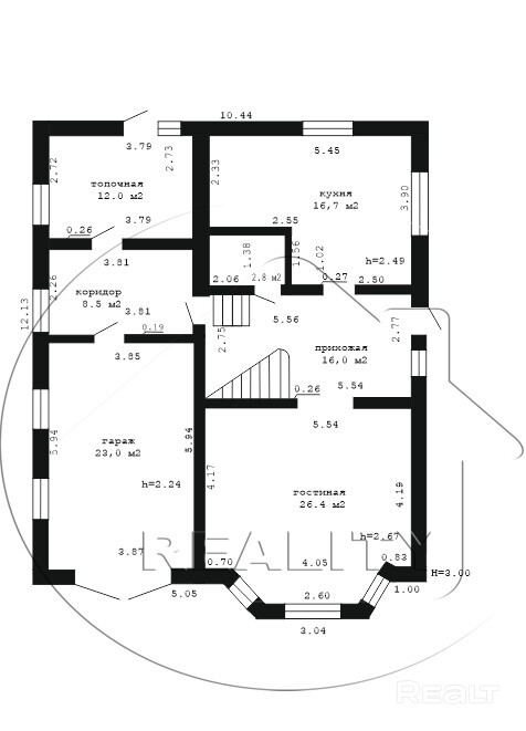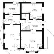 4 спальни: 15,1 м2, 16.1 м2, 21,4 м2 и 23,5 м2, холл 18,6 м2 и совмещенный санузел расположены на мансарде. На первом этаже большая гостиная 26,4 м2, кухня 16,7 м2 и прихожая 16 м2. Глубокий сухой погреб, а также функционально оборудованный выход из дома в гараж и во внутренний двор к зоне барбекю.