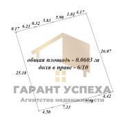 Земельный участок правильной формы площадью 6,03 сотки находится в долевом праве собственности (6/10 – 3,58 сотки) и огорожен со всех сторон забором с автомобильными воротами. Форма собственности – пожизненное наследуемое владение.