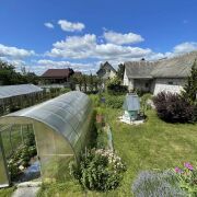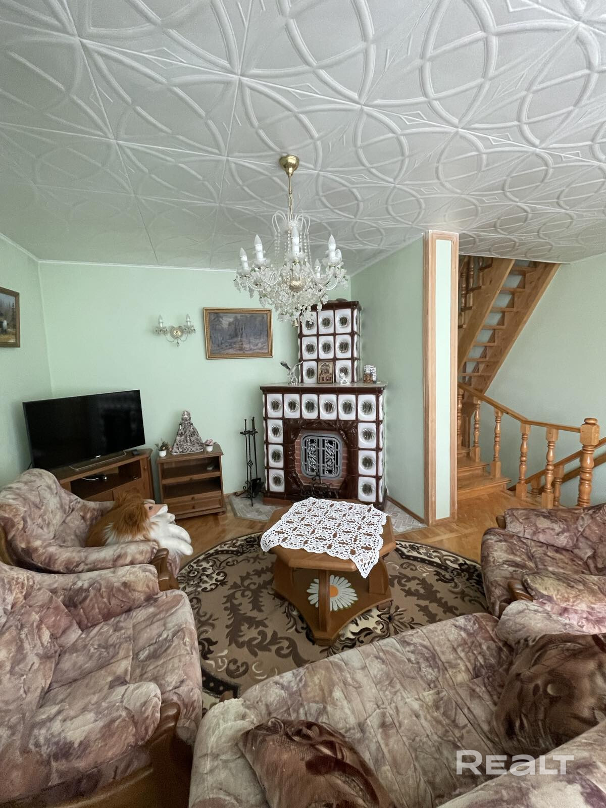 Цокольный этаж отапливаемый и включает в себя гараж,топочную, небольшую мастерскую, прачечную, помещения для хранения домашней утвари , а также имеется оборудованная кухня (очень удобно перерабатывать овощи и фрукты). В подвал два входа : из дома и с улицы.