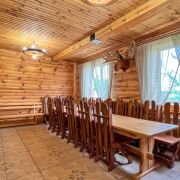 Многофункциональный комплекс из 4-х капитальных строений для ведения бизнеса в сферах отдыха и развлечений или агро-, экотуризма. Фундамент – монолитный, армированный, верх – фундаментные блоки. Стены всех зданий выполнены из блока, утеплены, частично оштукатурены и окрашены, частично отделаны «блок хаусом». Крыша всех строений - металлопрофиль. Окна - ПВХ. Основное здание – 2-х этажное, площадью около 350 м2, с большим банкетным залом на первом этаже и несколькими номерами (по проекту) на втором этаже. Дом для жизни (или для обслуживающего персонала) около 105 м2 на 4 жилые комнаты. Баня с банкетным залом около 90 м2, банкетный зал готов к приёму посетителей. Гостевой дом (летняя кухня) около 35 м2.