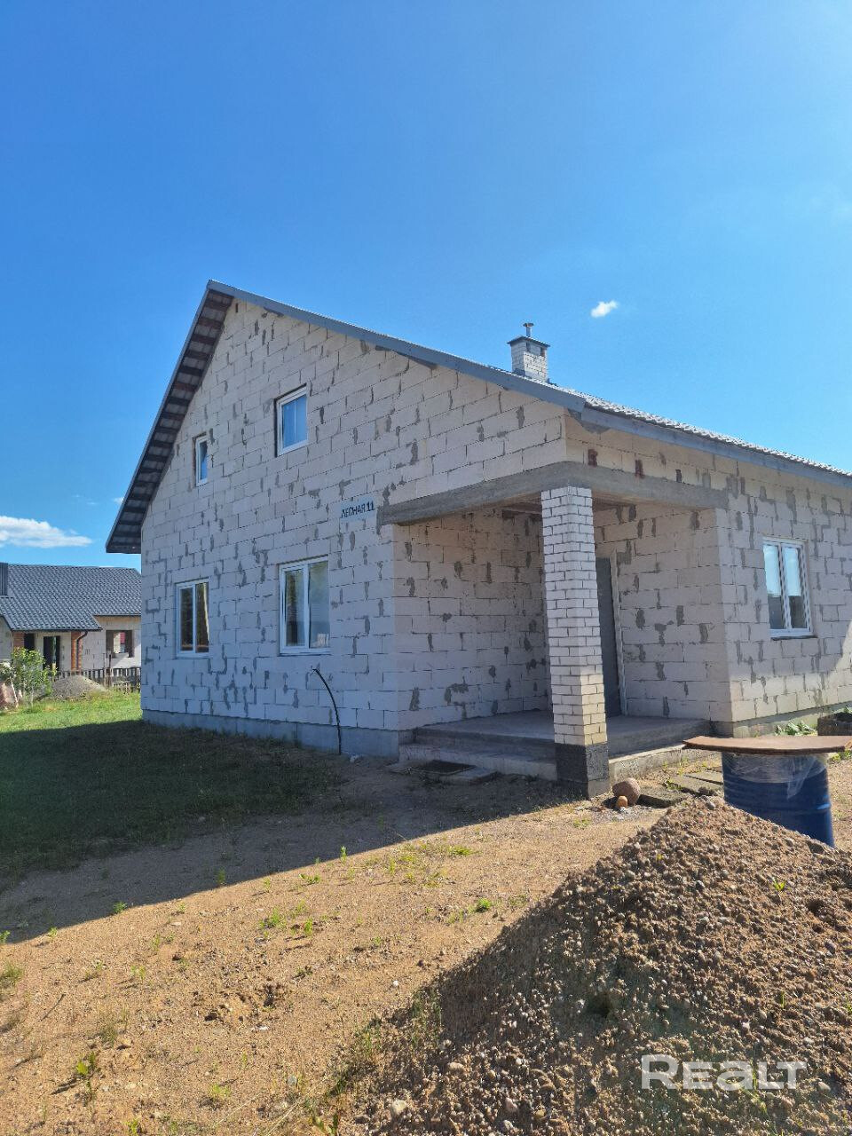 Продаётся дом под чистовую отделку в аг. Большие Радваничи. Дом построен из газосиликатных блоков, крыша-металлочерепица, фундамент ленточный, монолитный. Залита черновая стяжка пола. Общая площадь-151,6кв.м (1-й этаж 75,8 кв.м, мансардный 75,8кв.м). Высота потолков-3м. Утеплён мансардный этаж. Коммуникации: электричество введено в дом, гах-по улице, в доме разведена канализация, оптоволокно.Участок-0.1600 га, Залит монолитный фундамент размером 4,5х8,0 м для постройки гаража.