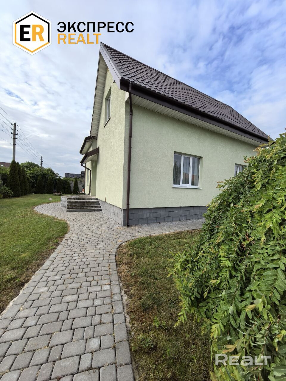 Площадь по СНБ 185,5 м2, общая площадь 158,7 м2, жилая площадь 82,7 м2. Стены: газосиликатный блок, утепление – пенополистирол, отделка фасада – оштукатурен, окрашен. Кровля: металлочерепица. Фундамент: ленточный монолитный. Коммуникации: отопление – газовый котёл, газ централизованный (в доме), водоснабжение – скважина и гидрофор, электричество – централизованное, канализация – автономная. Хоз. постройки: гараж. Участок – 0.0999 га.