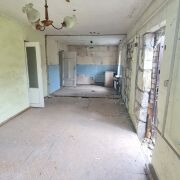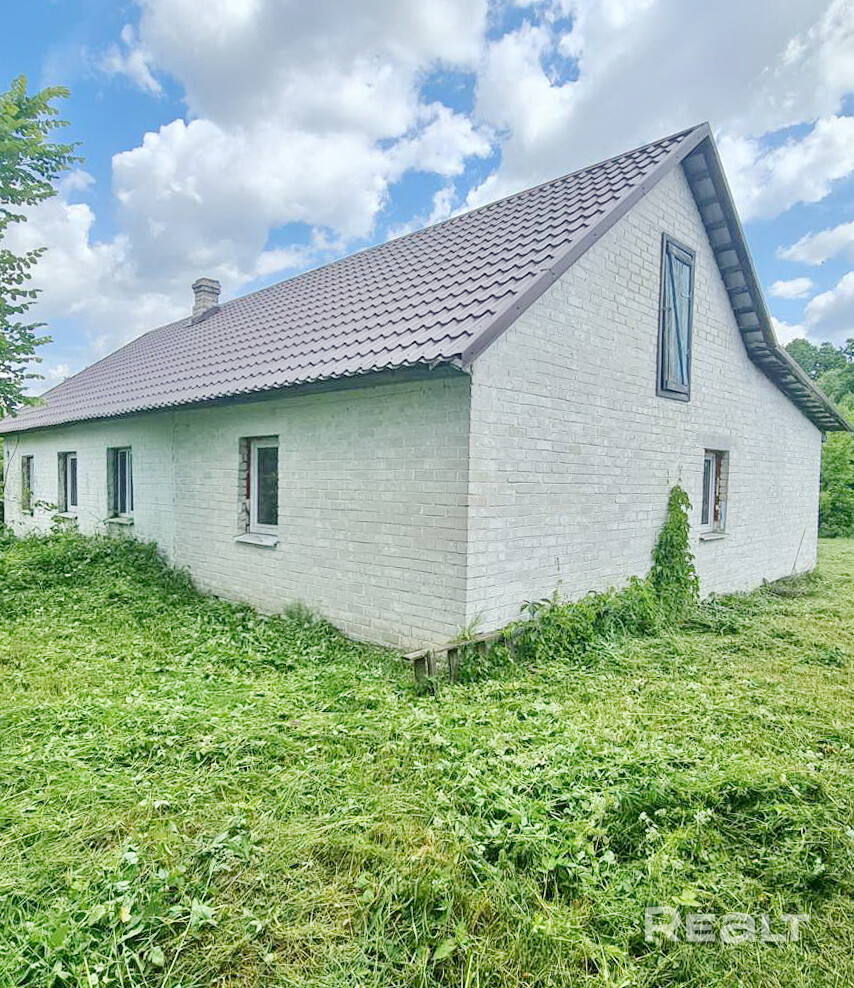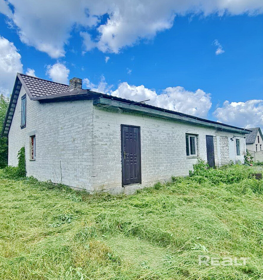 Дом в деревне Каменецкого района, построенный в 1966 году из газосиликатного блока. Фасад строения обложен кирпичом; кровля - металлочерепица. Общая площадь 123,1 кв.м. По плану в доме четыре изолированные жилые комнаты. Помещения в стадии реконструкции. Коммуникации: электричество - централизованное по улице, отопление - печное (газ по улице), водоснабжение - централизованное. Хозпостройки: веранда, сарай, гараж, погреб.