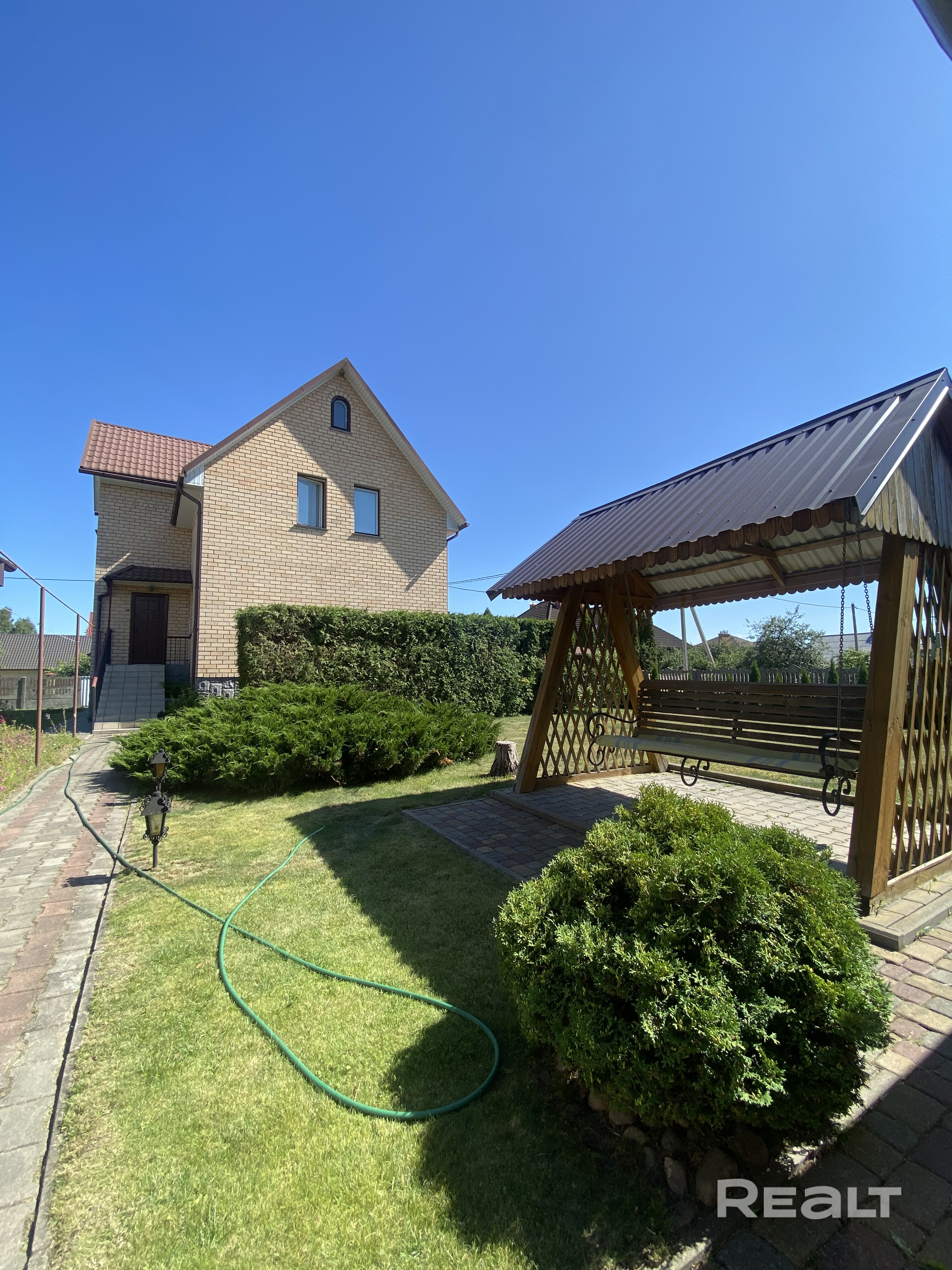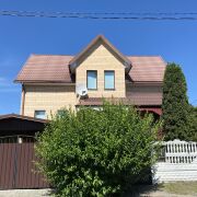 Продается комфортабельный коттедж вблизи живописной реки Мухавец, построенный в 2001 году. 2 этажа + цоколь (гараж, подвал). Общая площадь 193,6 кв.м, жилая – 66,6 кв.м, кухня – 14,2 кв.м. Стены – блок+утеплитель, облицовка кирпичом, крыша – металлочерепица. Деревянные тройные стеклопакеты. Полы частично выполнены из паркета, ламината и плитки. 5 комнат, 2 санузла, дубовая лестница, терраса. Участок 8,7 соток, огорожен. Гараж, баня, летняя кухня, беседка, качели. Огород, туи, вишня, яблоня.