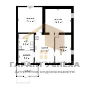 Общая площадь – 76,2/70,2 кв. м, жилая – 44,3 кв. м, кухня – 14,7 кв. м. Три изолированные жилые комнаты 11,8/16,1/16,4 кв. м. Веранда 6 кв. м.
