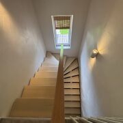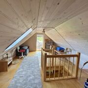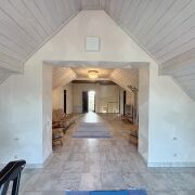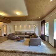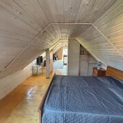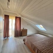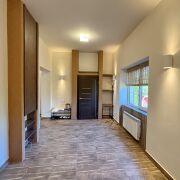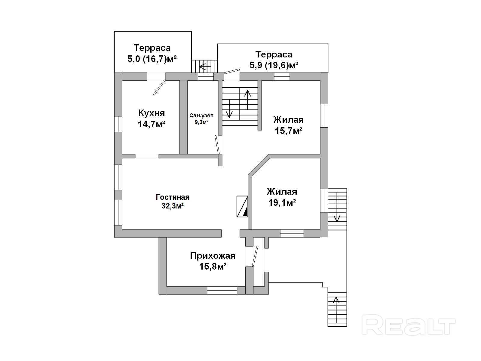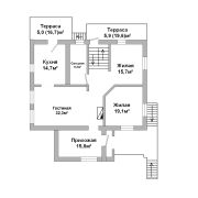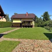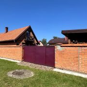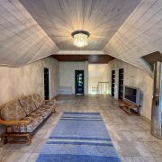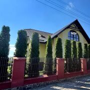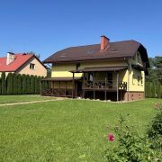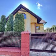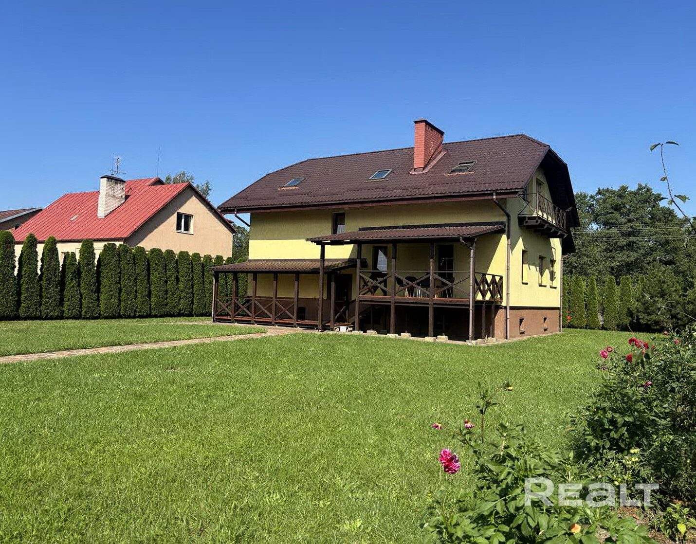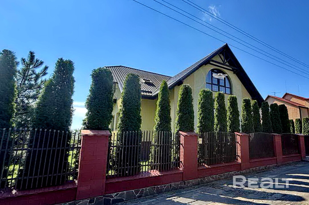Двухэтажный жилой дом 1996 года постройки в ближайшем пригороде Бреста. Стены из керамического кирпича, кровля – металлочерепица. Установлены стеклопакеты, мансардные и французские окна. Общая площадь 314,0 кв.м, жилая 121,6 кв.м. В основу планировки в два уровня входит цель разграничения всего пространства на территорию общественного назначения и приватного. На первом этаже - прихожая 15,8 кв.м, переходящая в общую зону гостиной 32,3 кв.м., холла 17,1 кв.м., кухни-столовой 14,7 кв.м. с выходом на террасу, две комнаты, ванная. На втором этаже – холл, три спальни, два санузла. В подвальном этаже под строением находятся кладовые, котельная и встроенный гараж.