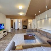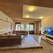 В доме, укомплектованным мебелью и техникой выполнен дизайнерский ремонт с использованием комбинированных материалов высокого качества, в оформлении интерьера немало оригинальных решений. Многоуровневые потолки с разноплановой системой освещения. Сердцем гостиной является камин, который создает оазис тепла и уюта. Просторные санузлы облицованы современной керамической плиткой, установлена сантехника, угловая ванна, душевые кабины, встроенная мебель.
