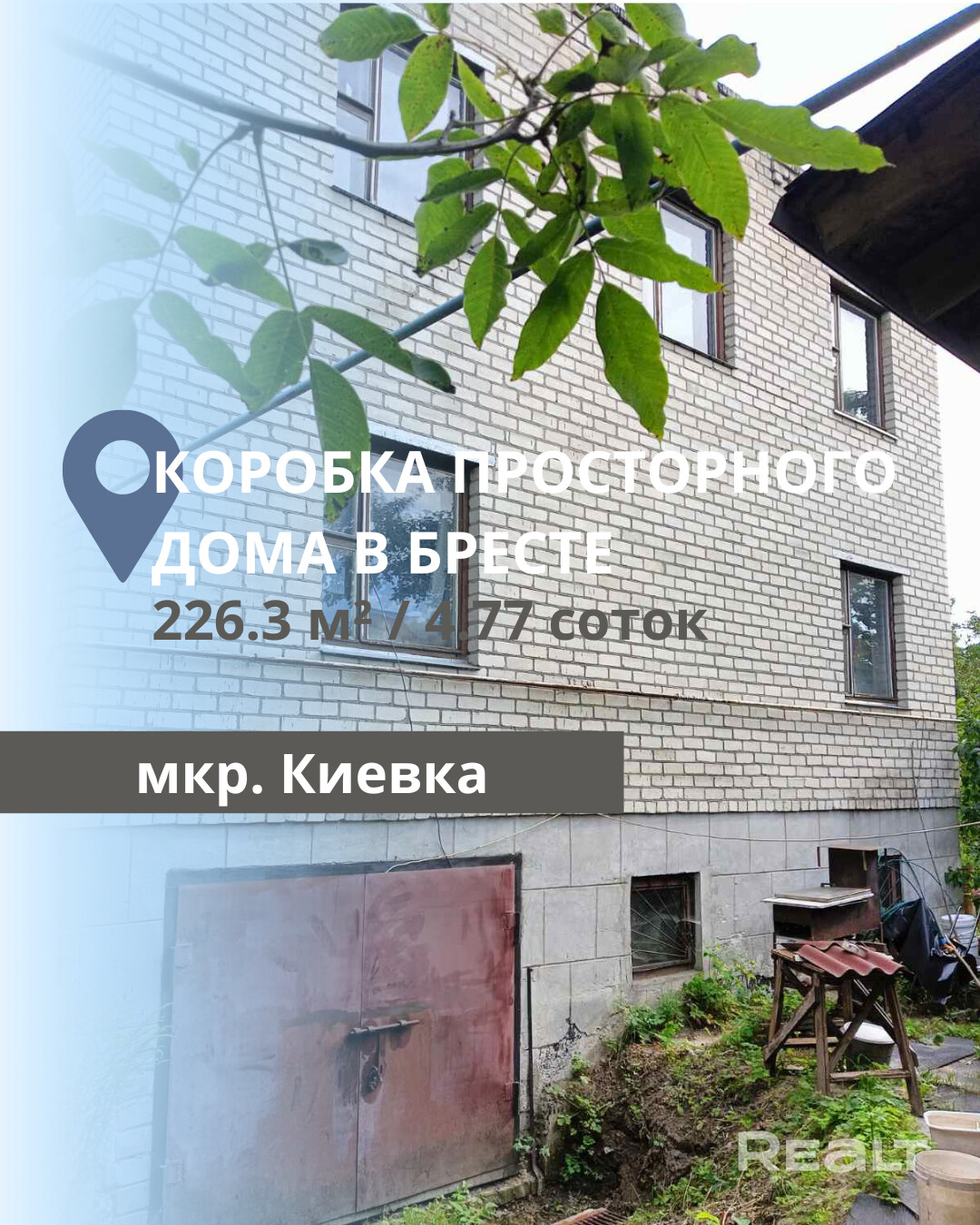 Продается коробка дома из кирпича в районе Киевки. Месторасположение на карте указано приблизительно. Общая площадь составляет 226,3 м2, из которых 148,7 м2 занимают жилые помещения. Проект дома включает пять комнат, две кухни и два санузла, распределенных по трем уровням. В цокольном этаже расположены гараж, топочная и помещение для бани, а первый и второй этажи предназначены для проживания. Все коммуникации центральные, полностью заведены и разведены по дому. Есть электричество 380В. Участок площадью 4,77 сотки имеет асфальтированные подъездные пути. В непосредственной близости находятся магазины, остановка общественного транспорта и ж/д сообщение, что обеспечивает удобный доступ ко всем необходимым объектам инфраструктуры.