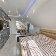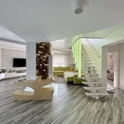 Мансардный жилой дом 2015 года постройки в южной части г. Бреста. Просторный и уютный с балконам и террасой возведен из газосиликатных блоков 30 см, утепление – минеральная вата, фасад облицован клинкерным кирпичом. Установлены стеклопакеты. Общая площадь 176,0 кв.м, жилая 83,5 кв.м. Функциональный дизайн-проект разработан для четырёх жилых комнат, расположенных на разных этажах, просторный гостевой холл совмещен с гостиной, кухней-столовой 61,4 кв. м. с выходом на террасу 22 кв.м., 2 санузла, гардеробная, техническое помещение.