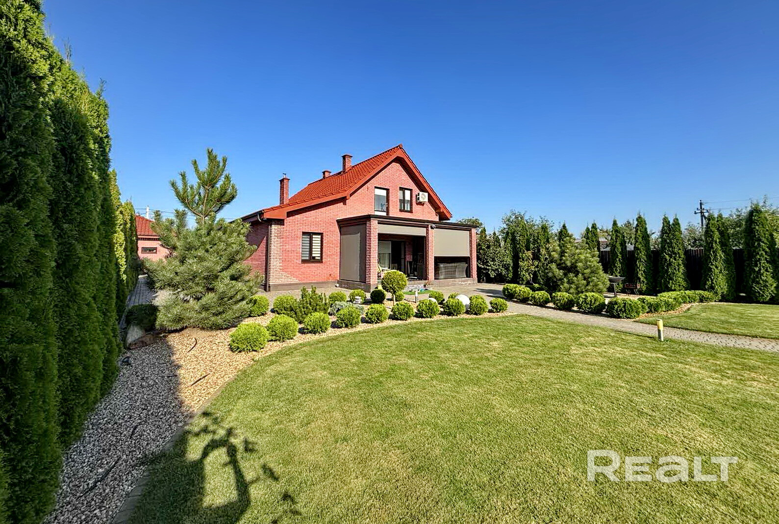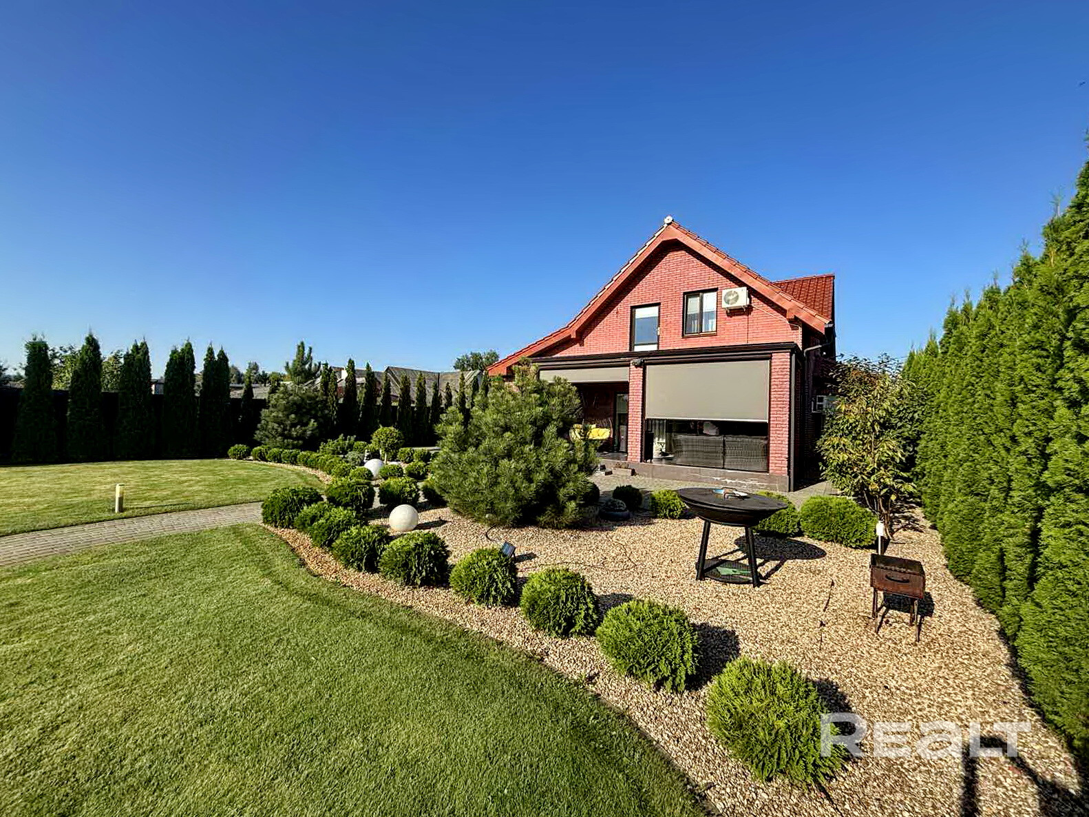 Благоустроенную территорию площадью 0,25 га украшают вечнозеленые хвойные и цветущие растения, вымощенные дорожки, установлен бассейн. На участке есть разноплановые хозяйственные постройки: гостевой дом, летняя кухня, гараж на 2 авто.