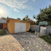 Земельный участок правильной квадратной формы, площадью 0,0591 га. Со всех огорожен бетонным секционным забором. Откатные ворота. Помимо дома на нём расположен капитальный гараж, баня. На территории высажены хвойные декоративные растения, множество цветущих растений, плодовых деревьев и кустарников. Территория вымощена тротуарной плиткой.