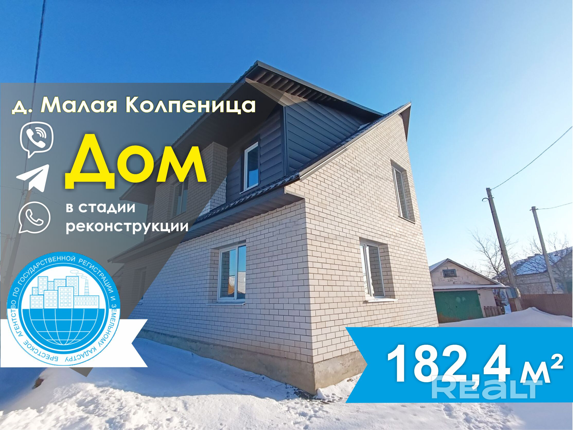 Продается дом в стадии реконструкции в д. Малая Колпеница. По проекту дом двухэтажный с мансардой площадью – 182,4 кв.м, жилая – 108,3 кв.м, кухня – 12,5 кв.м. В доме планируется шесть жилых комнат. Планировка дома достаточно функциональная и удобная. Коммуникации подведены к дому, канализация местная.