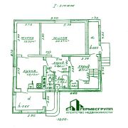 На 1 этаже расположены: прихожая, кухня (12,13 м2), гостиная (20,67 м2), комната, ванная, котельная, кладовая, коридор с деревянной лестницей.