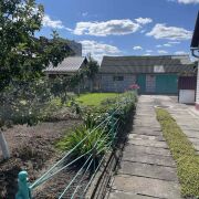 Ухоженный участок, весь огорожен забором, блочный гараж-сарай.