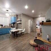 Характеристики дома: построен из гс/к блоков, утеплен пенополистиролом и оштукатурен, колонны на террасе и цоколь дома облицованы плиткой "Рваный камень"; материал кровли - металлочерепица. Установлены окна ПВХ, входная дверь металлическая, внутренние - шпон. Ремонт внутри: потолки натяжные с встроенными светильниками, напольное покрытие - паркетная доска, керамогранит. Стены окрашены + декоративный кирпич. Санузел облицован крупноформатным керамогранитом.