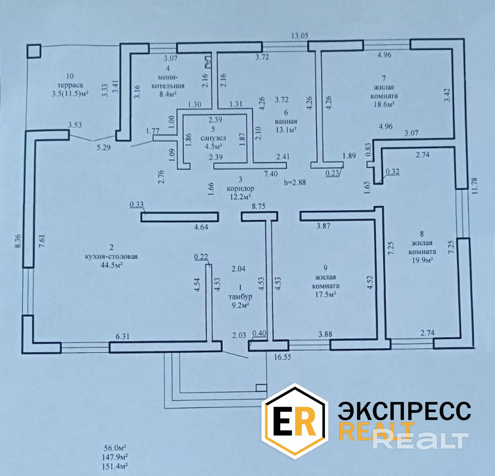 Продаётся современный жилой дом в микрорайоне Красный Двор города Бреста. Дом из газосиликатных блоков 2025 года постройки. Металлическая фальцевая кровля. Фундамент - ленточный монолитный, материал - бетон. Функциональная планировка включает 3 спальни, просторную кухню-столовую, 2 санузла, мини-котельную и коридоры. Также имеется терраса, где можно создать уютную лаунж-зону для комфортного отдыха. Общая площадь дома 147,9 м2, жилая – 56,0 м2, площадь кухни-столовой 44,5 м2. Дом под чистовую отделку, что позволит новым собственникам воплотить собственные дизайнерские идеи и решения. Выполнена стяжка пола, система отопления - теплый пол. Окна - пластиковые стеклопакеты. Отопление в доме обеспечивается за счет газового котла. Дом расположен на земельном участке правильной прямоугольной формы площадью 0,1075 га. Участок в частной собственности, частично огорожен. На участке имеется гараж площадью 51 м2.