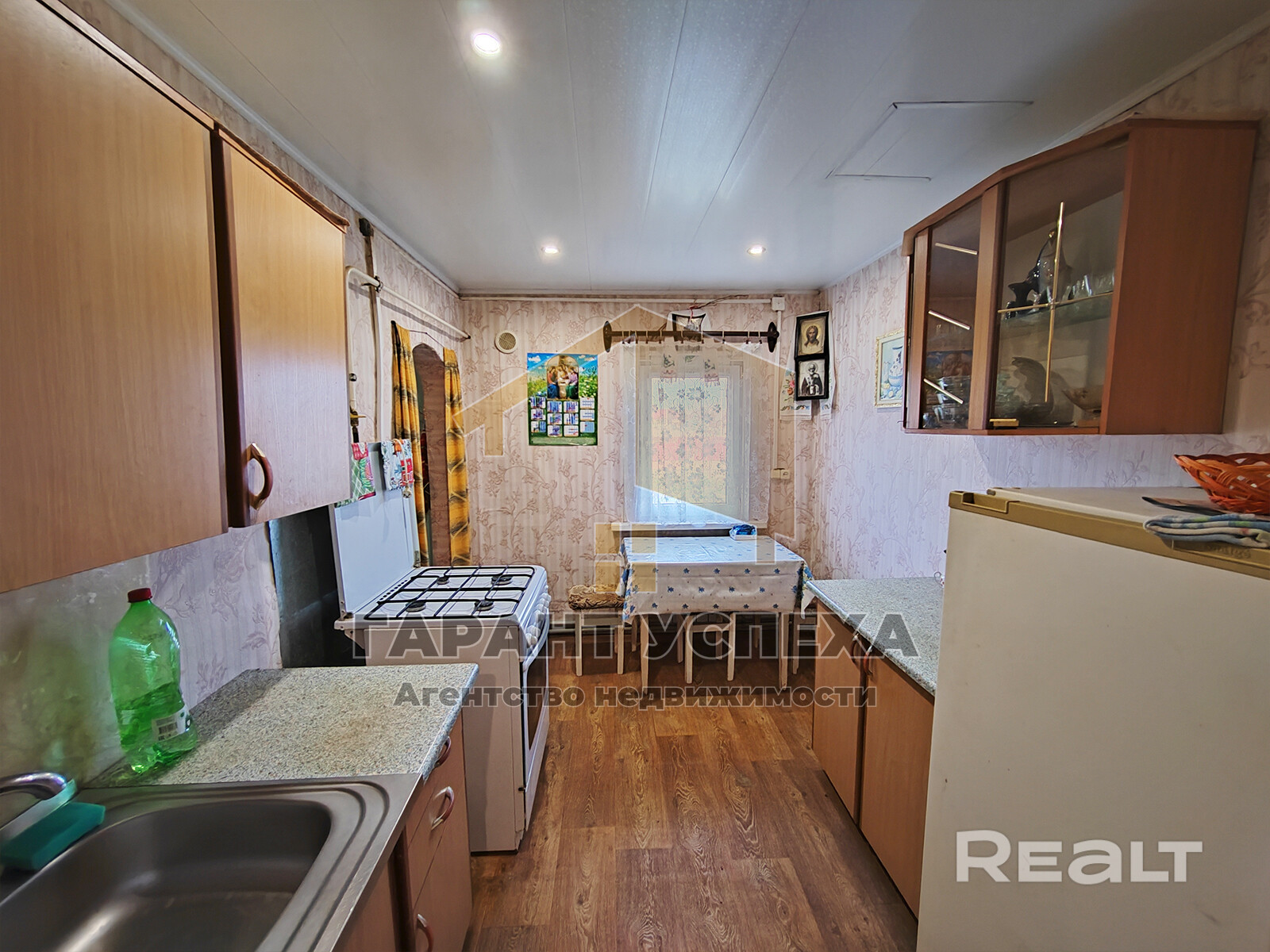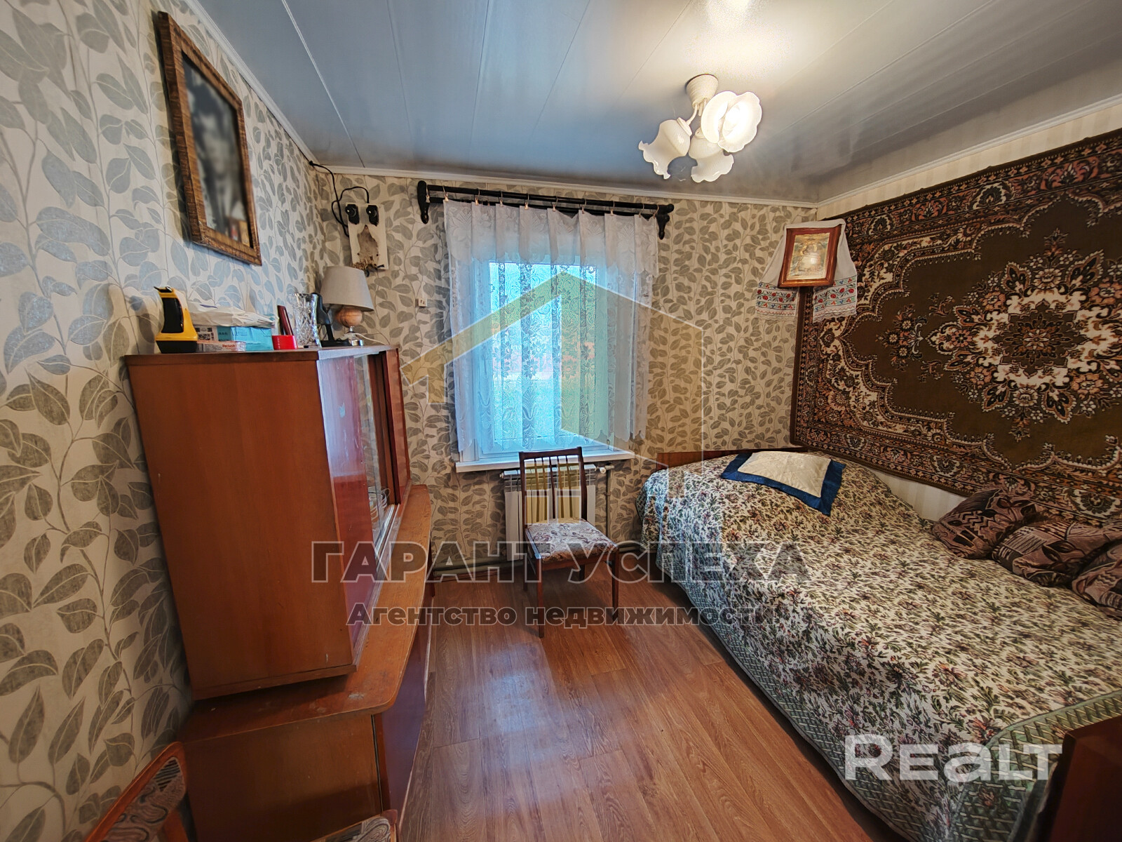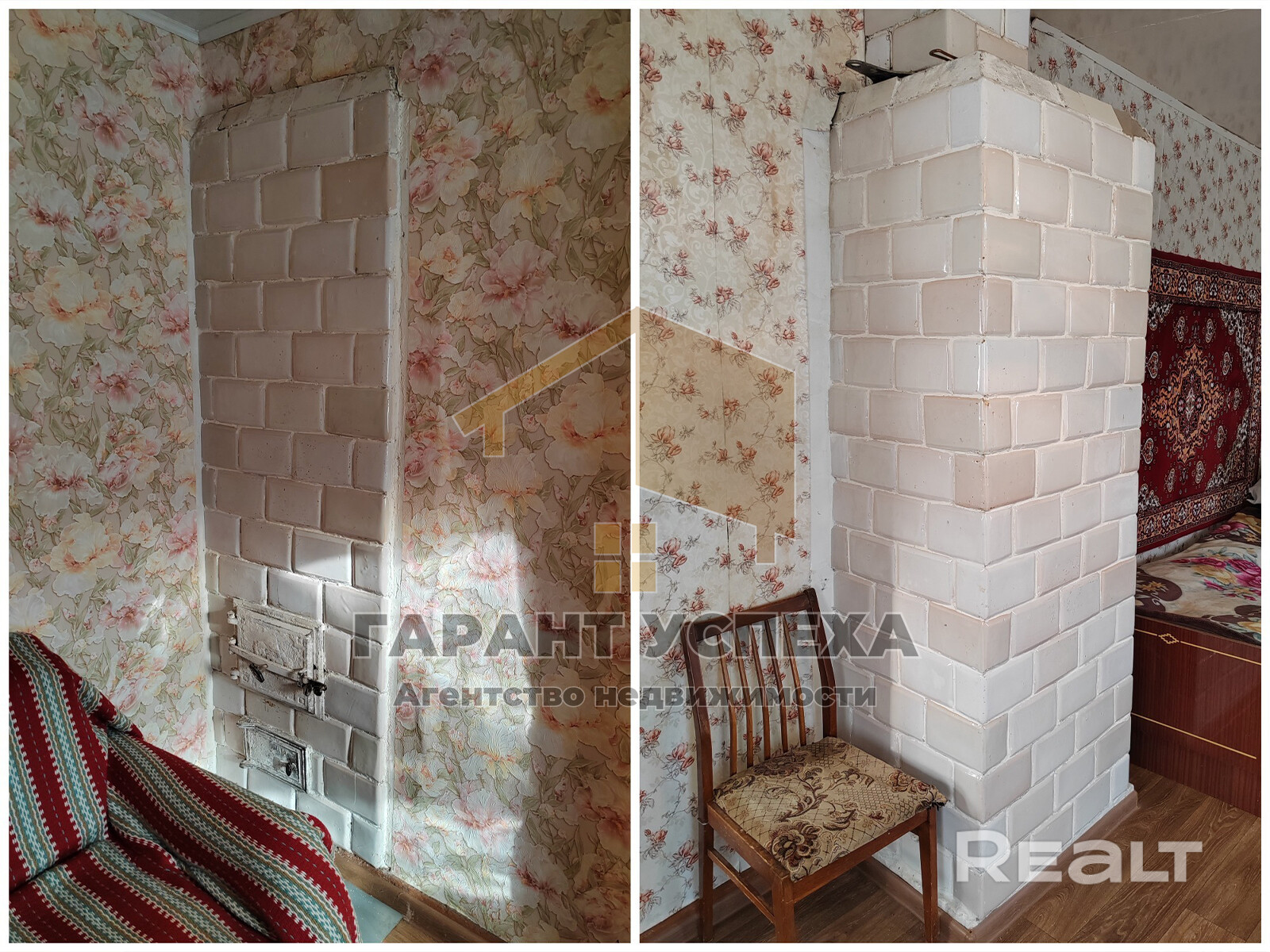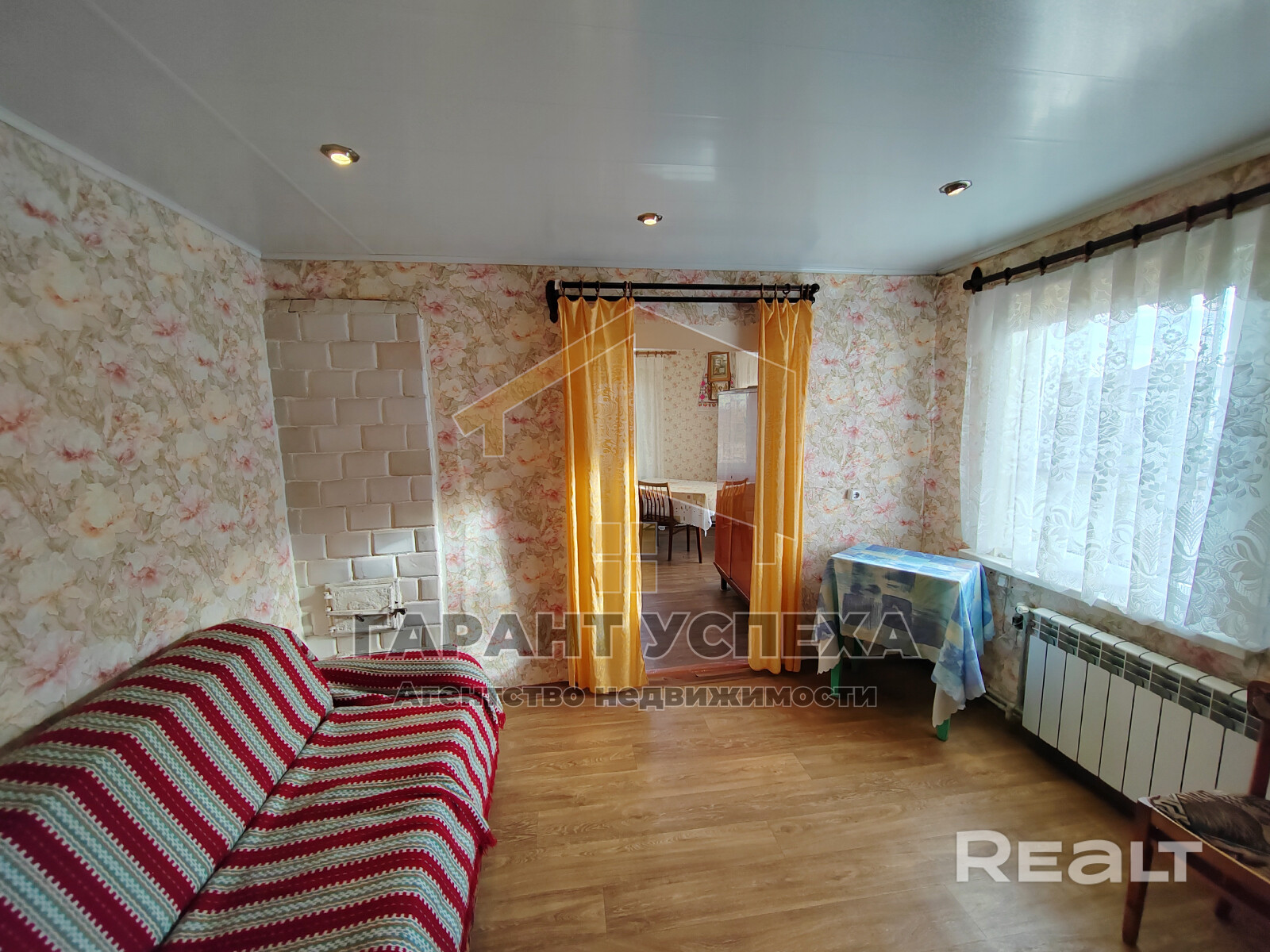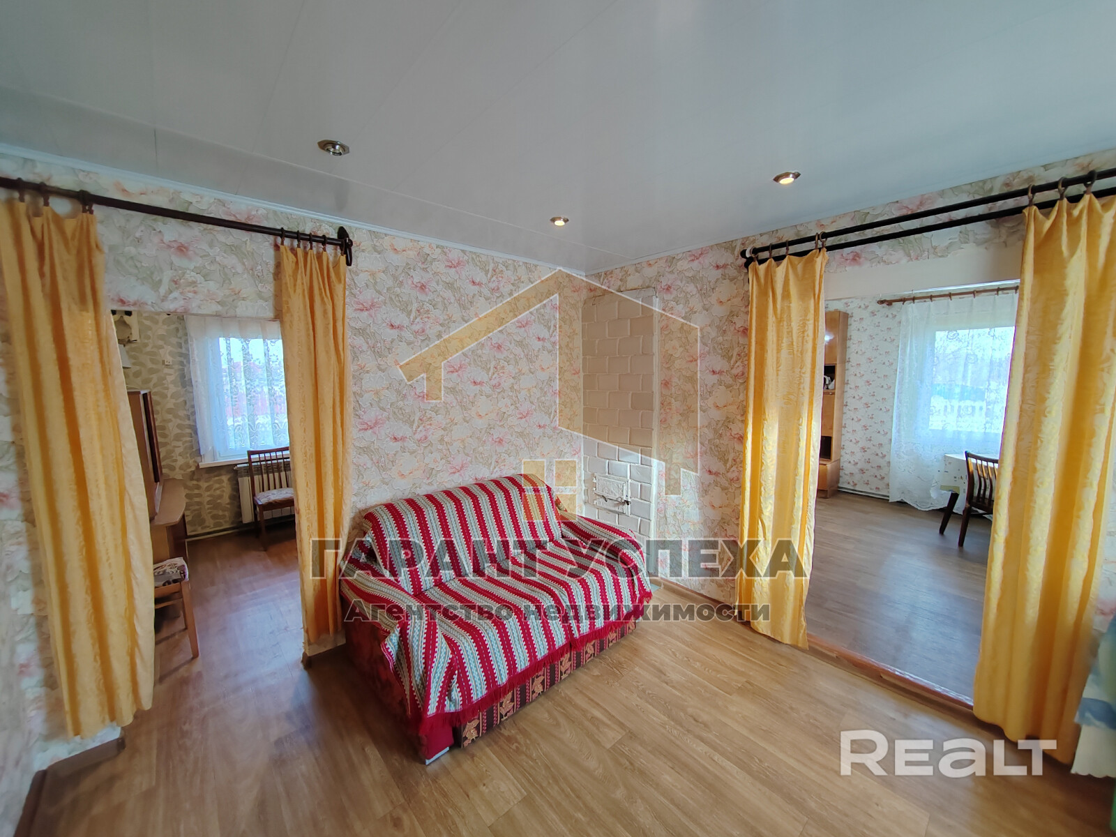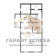 Общая площадь жилых помещений составляет 72,8 кв.м., жилая – 51,89 кв.м. В доме имеются небольшая кухня, три жилых комнаты, при этом самая большая имеет достаточно внушительный размер (33,58 кв.м), коридор и совмещённый санузел с топочной. Отапливается дом при помощи водяных радиаторов, но помимо этого уют Вашему дому придаст печь, обогревающая жилые комнаты. Для хранения консервирований и продукции с участка имеется подсобное помещение.