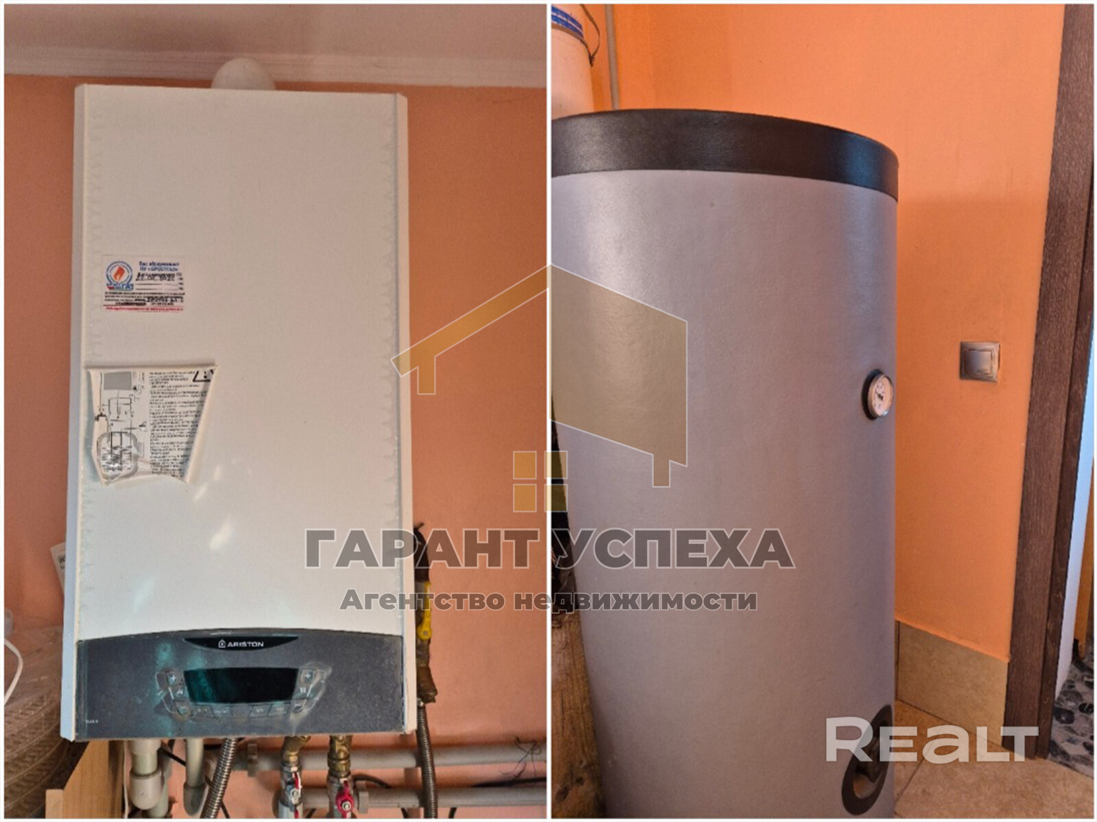 - газоснабжение центральное, заведено в дом, отопление современным газовым котлом, помимо этого есть бойлер косвенного нагрева, который позволяет хранить запас горячей воды;