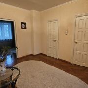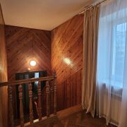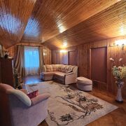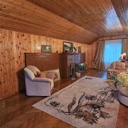 На первом этаже просторный холл,кухня с выходом на веранду, совмещенный санузел в классическом стиле с керамической плиткой,оборудован ванной, огромная гостиная (30,6 м.кв.),что создает ощущение простора и уюта.