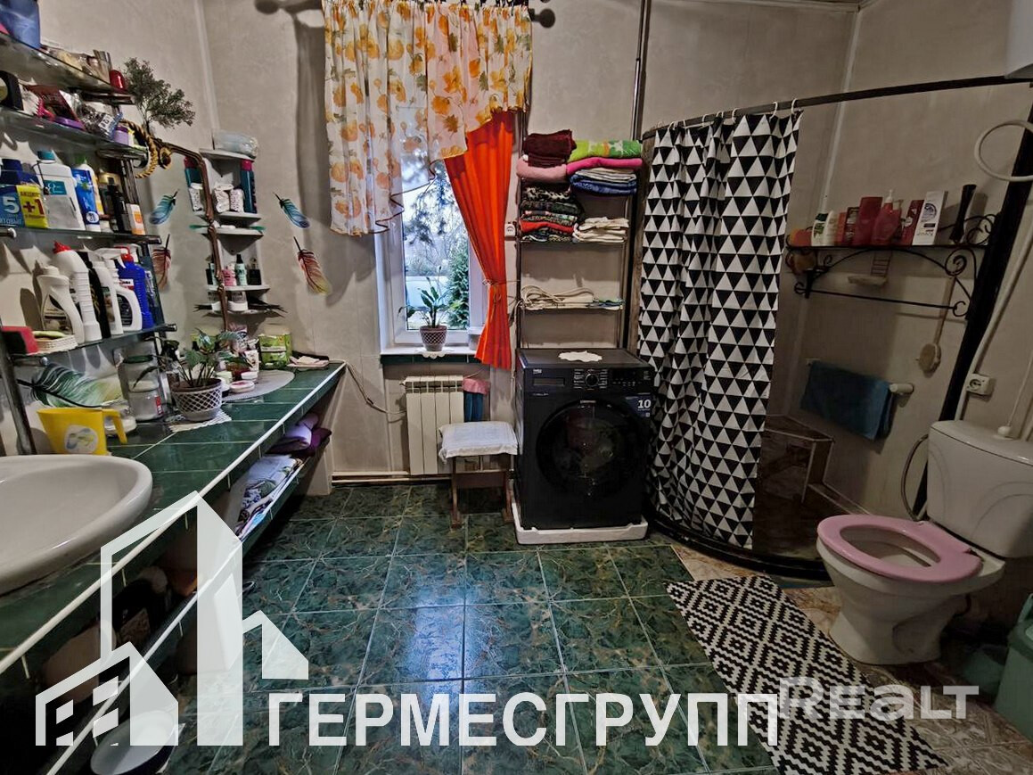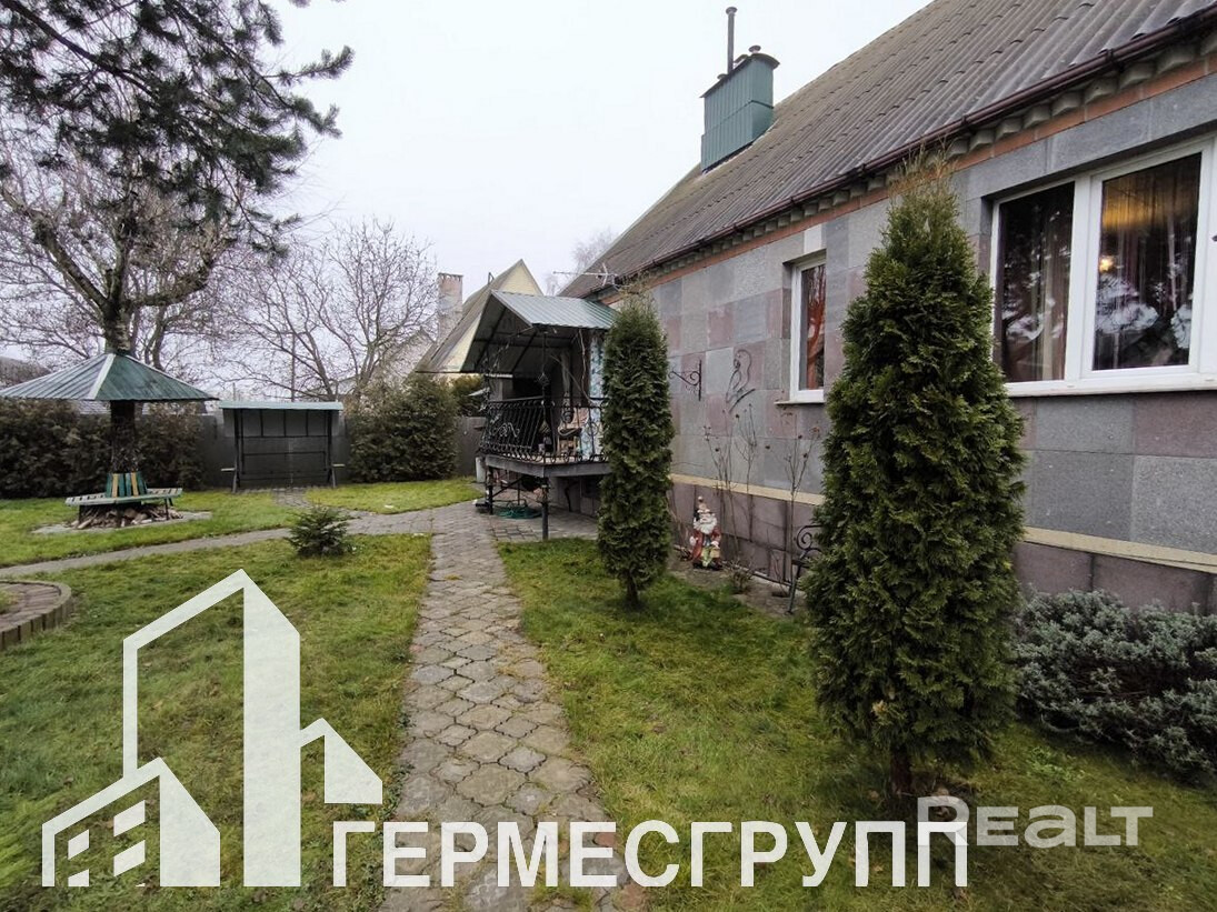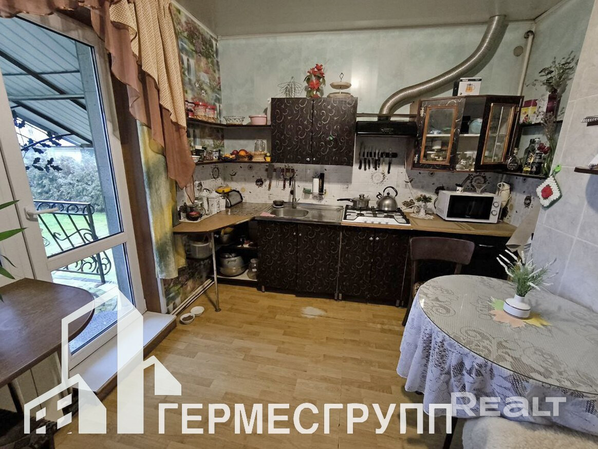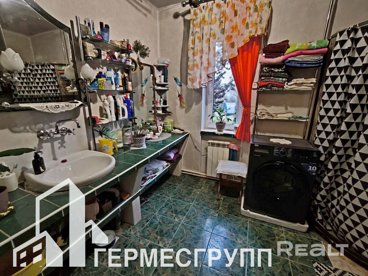 Три жилые комнаты, санузел совмещен, из кухни выход на террасу и во внутренний двор. Окна ПВХ, двери деревянные, полы- ламинат, крыша шифер. Газ центральный, отопление газовое, вода - колодец (гидрофор) + скважина, канализация местная.