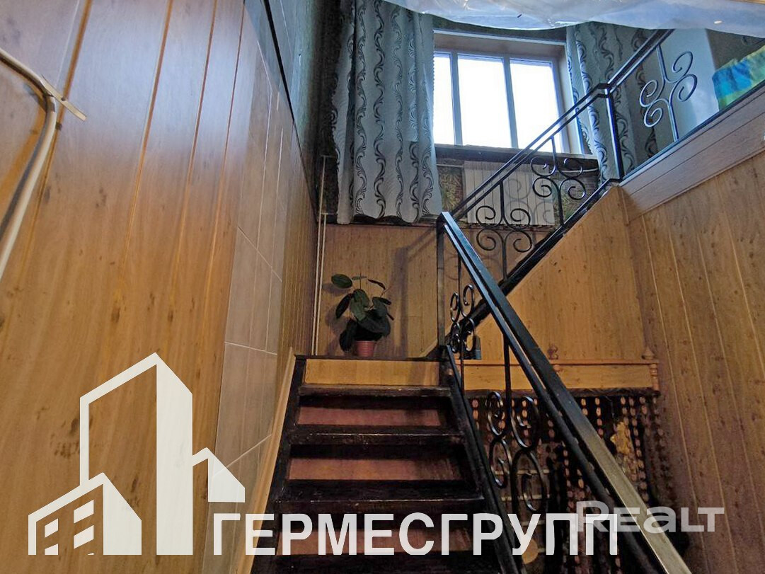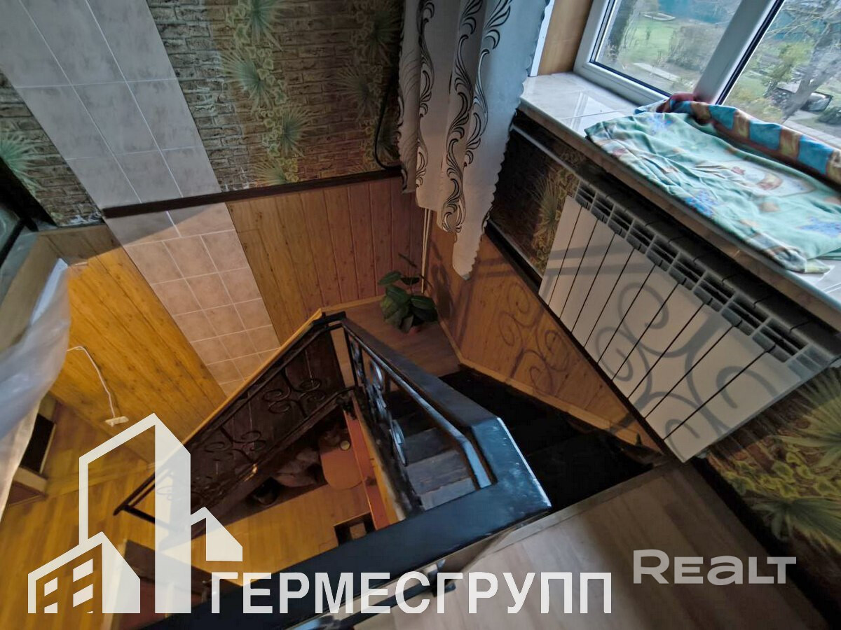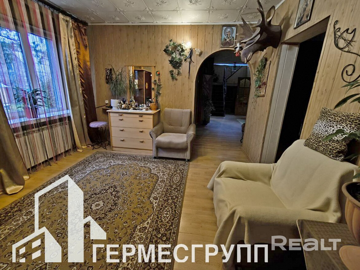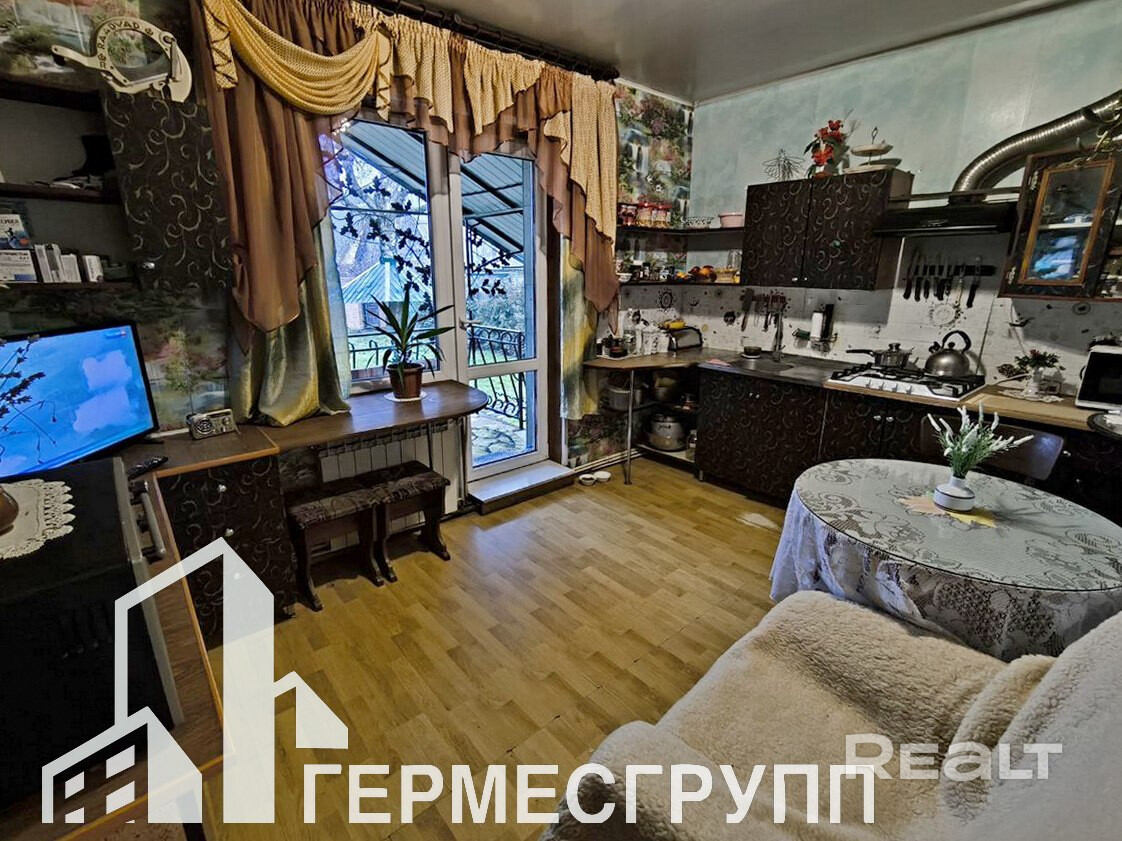 Три жилые комнаты, санузел совмещен, из кухни выход на террасу и во внутренний двор. Окна ПВХ, двери деревянные, полы- ламинат, крыша шифер. Газ центральный, отопление газовое, вода - колодец (гидрофор) + скважина, канализация местная.