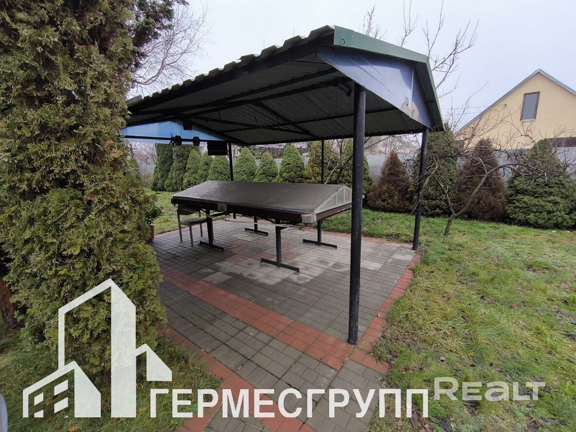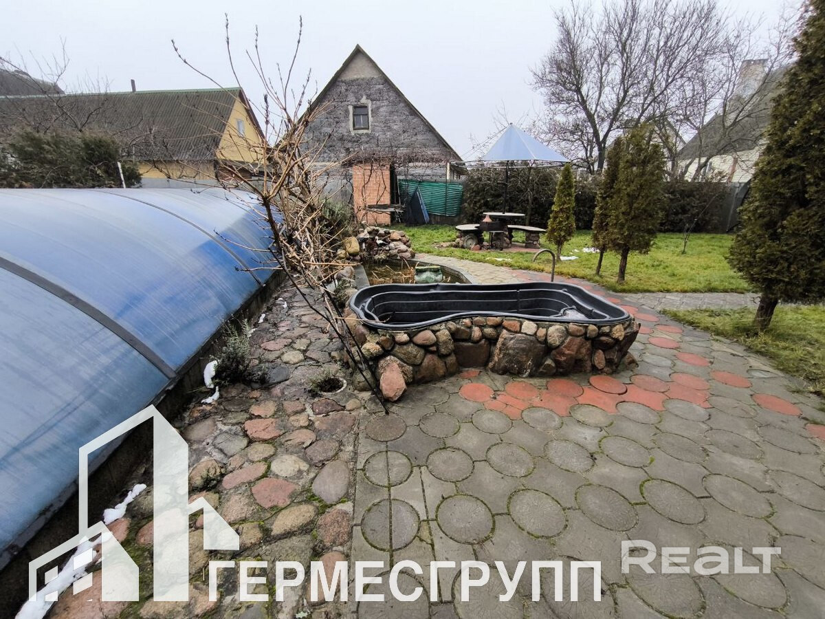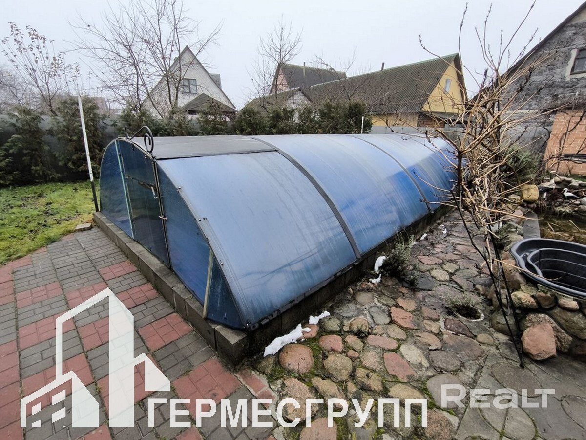Участок 10 соток с благоустройством, огорожен со всех сторон, ухожен. На участке есть полноценный крытый бассейн, мангальная зона, зона с бильярдом, декоративные растения.