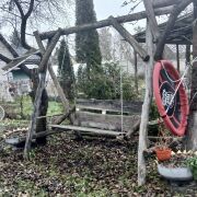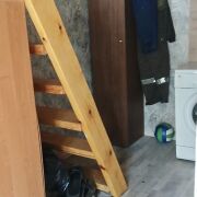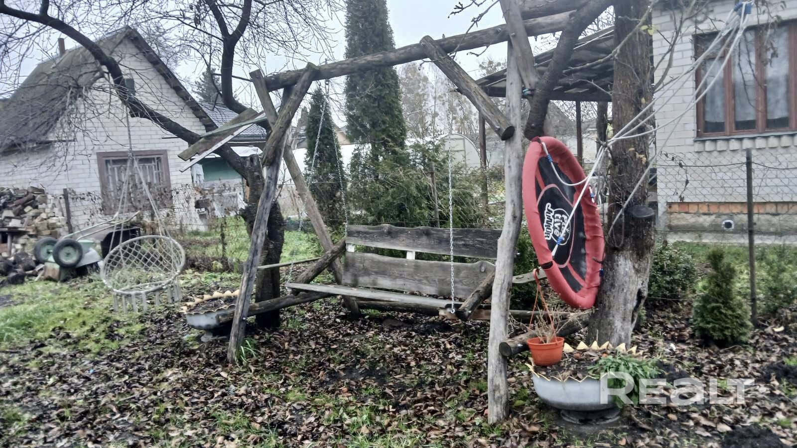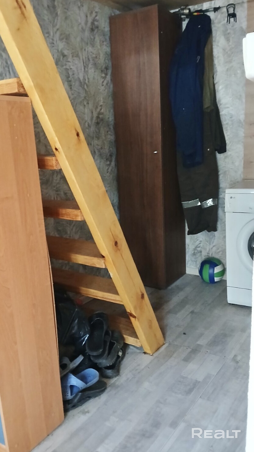 Общ. площадь дома 50,0 м. кв., состоит из гостевой комнаты с кухней на первом этаже и одной комнаты на втором этаже. Внутри дома стены оклеены обоями, на полу ламинат, окна деревянные. Отопление печное, электричество есть, скважина, газ по улице. На участке имеется большой сарай из блоков, беседка, установлена качель. Стены дома дерево/кирпич, забор бетонный, на участке выложена тратуарная плитка, установлена качель.