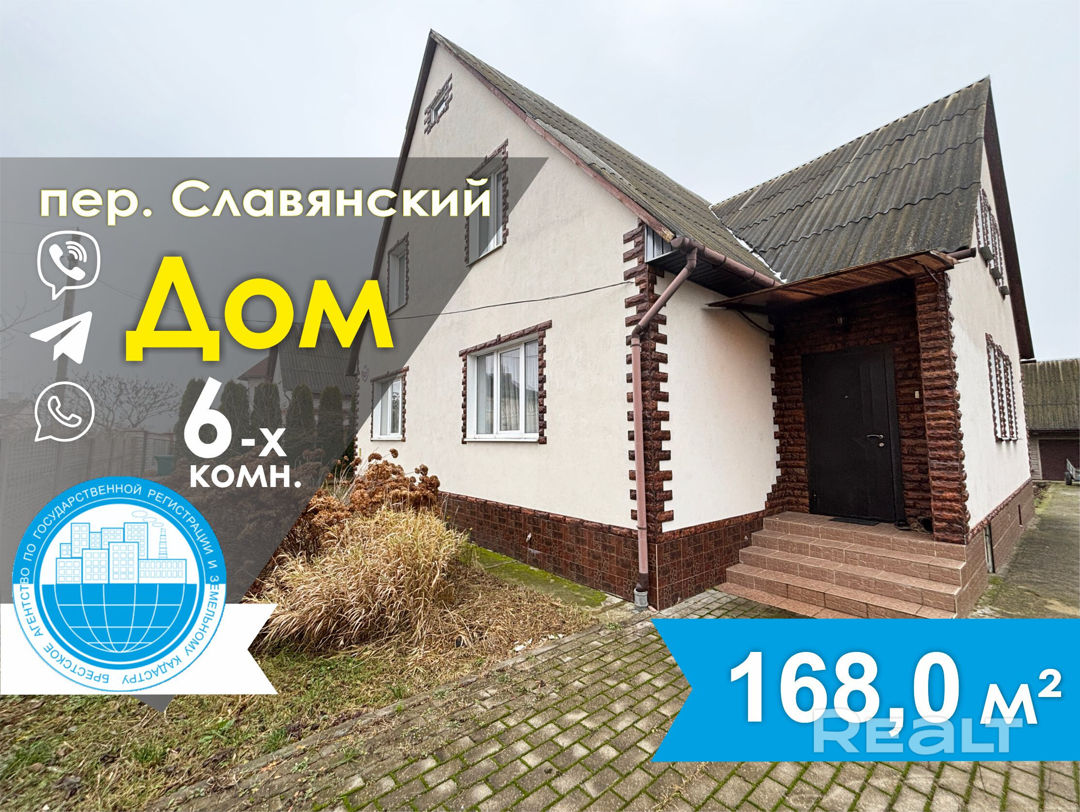 Продается дом мансардного типа по адресу пер. Славянский. Год постройки 2012. Площадь по СНБ – 168,0 кв.м, общая – 159,6 кв.м, жилая – 95,6 кв.м, кухня -11,1 кв.м. Дом состоит из шести жилых комнат, отдельной кухни, просторных коридоров и прихожей. Между этажами установлена деревянная лестница. Мансардный этаж подготовлен под отделку.