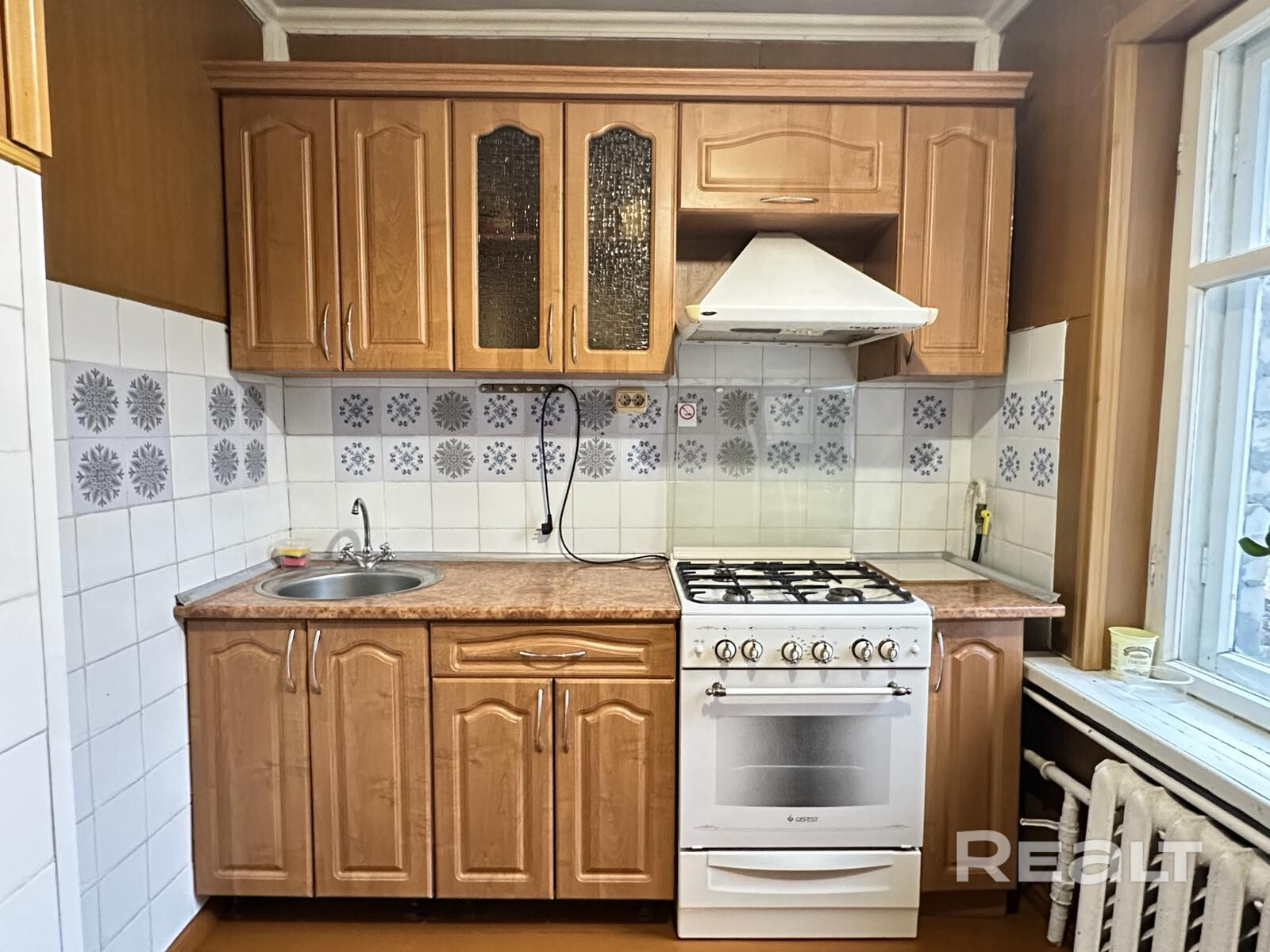 Продаётся двухкомнатная квартира в блокированном доме на Дубровке с общей площадью 51 м2, из которых жилая площадь составляет 27 м2, а кухня — 5,5 м2. Дом построен в 1977 году, имеет бетонный фундамент и стены из шлакобетона и кирпича. Квартира находится в аккуратном жилом состоянии: деревянные окна и двери, дощатые полы (в санузле — плитка), стены оклеены обоями, потолки выровнены и окрашены. Отопление обеспечивается газовым котлом, водоснабжение - центральное и пробита скважина, канализация - местная (рядом проходит центральная) .