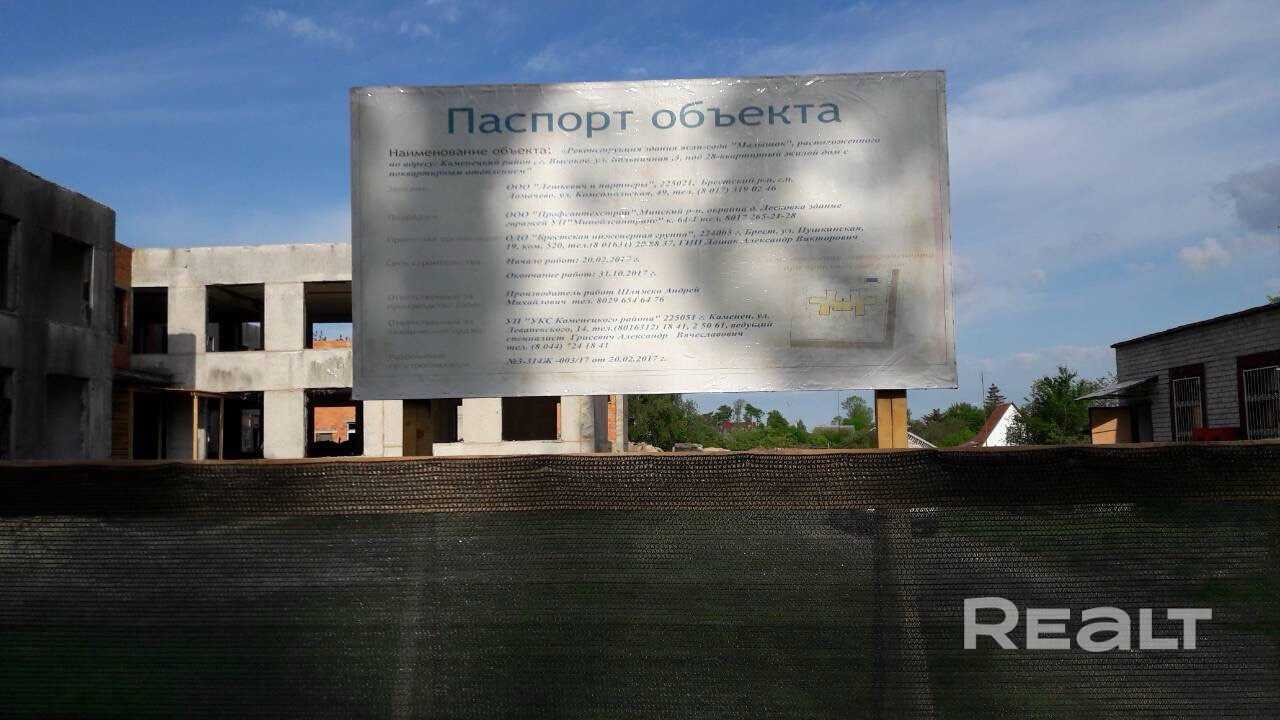 Незавершенное законсервированное капитальное строение, здание неустановленного образца. Целевое назначение земельного участка - для реконструкции детского ясли-сада "Малышок" под 28-квартирный жилой дом с поквартирным отоплением. Звонить с 8 до 17 в рабочие дни. Рассмотрим любые предложения.