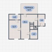 Дом общей площадью 88 кв.м2. Состоит из трех комнат, кухни- гостинной и мансардный этаж.