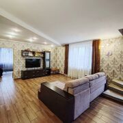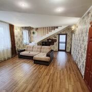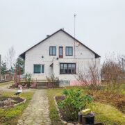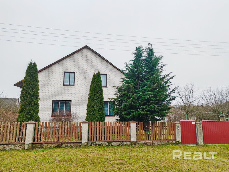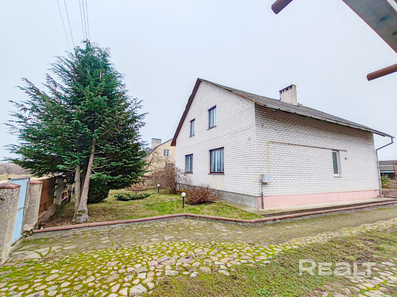 Современный жилой дом в ближайшем пригороде, агрогородок Большие Мотыкалы. Площадь 174,4 м2, площадь по СНБ 184,4 м2, жилая площадь 122,1 м2. Материал стен- газосиликатный блок облицован кирпичом, крыша-шифер, в проекте дома использованы современные планировочные решения, 4-е изолированные спальни, светлая гостиная и кухня 17,9 м2. Отопление- газовое, вода и свет- центральные, канализация - центральная.